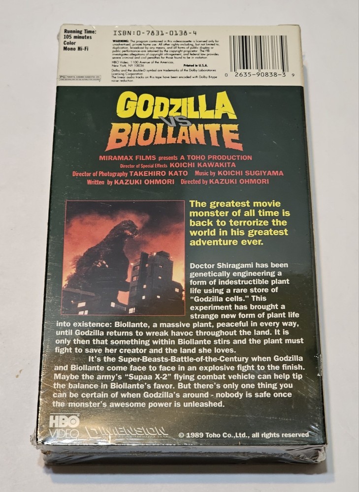 Godzilla Vs. Biollante (VHS, 1989, HBO HomevVideo) New Sealed