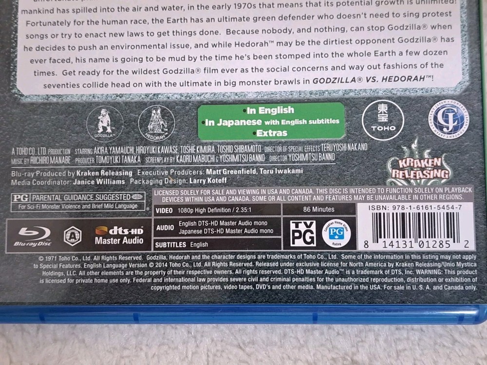 Get ready for an epic battle between two legendary monsters in this rare and highly sought-after Blu-ray disc. The Godzilla vs. Hedorah and Godzilla vs. The Smog Monster movie, directed by Yoshimitu Banno, is a must-have for any fan of the sci-fi and fantasy genre. This disc features the full-length, unedited version of the movie, with both English and Japanese audio options. In excellent condition! Visit and follow the store for more great finds!!