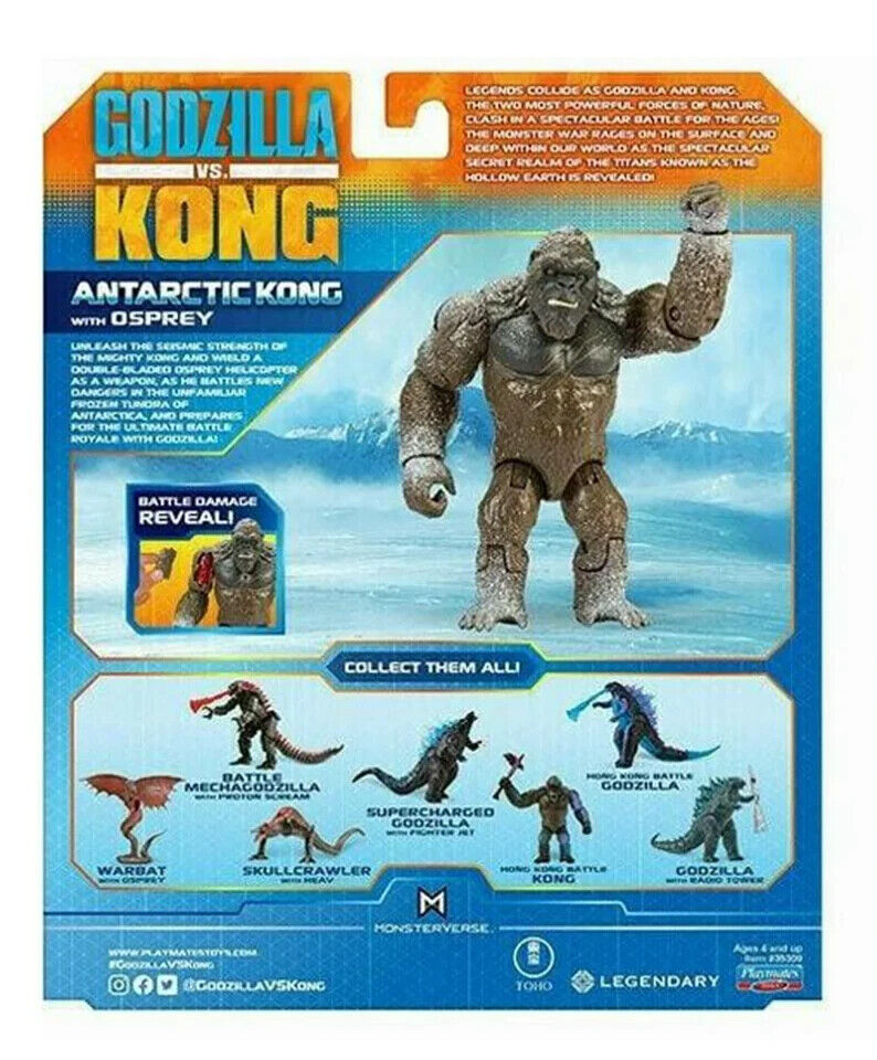 Godzilla Vs Kong Antarctic Kong With Osprey Monsterverse 6" Package has some damage from moving around shelves please see pictures before purchase Get ready for an epic battle with this licensed reproduction of Antarctic Kong with Osprey from the MonsterVerse franchise. ABS plastic action figure Battle damage reveal Comes boxed Realistic sound effects. Aged 4+.