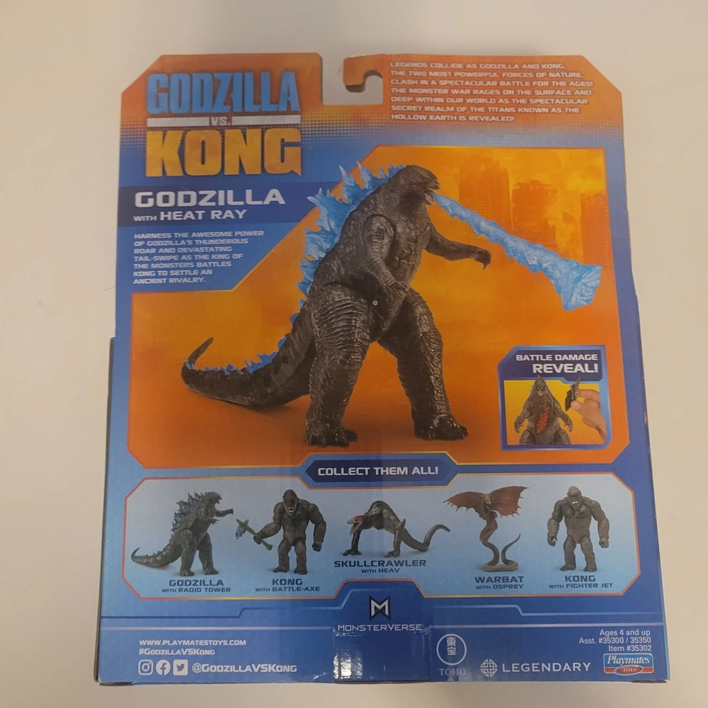 Get ready for an epic battle between two iconic monsters with the Godzilla Vs Kong Godzilla action figure! This 6" figure comes with a heat ray and adjustable features, and is packaged in its original unopened box. The figure is based on the popular movie Godzilla Vs Kong and is an original licensed reproduction from Playmates Toys. The Godzilla Vs Kong Godzilla action figure is made of plastic and has a multicolor design. It is recommended for ages 4 and up, and is perfect for collectors and fans of the Godzilla franchise. Don't miss out on the chance to add this incredible figure to your collection!