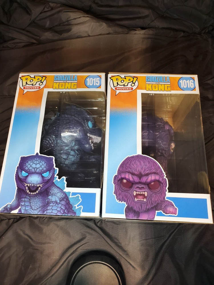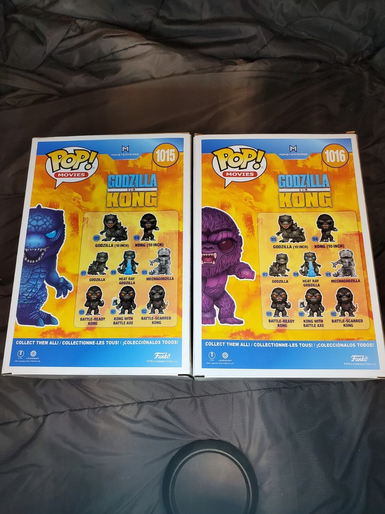Godzilla Vs Kong Jumbo Pop Lot 1015/1016 Walmart Exclusive. Both are unopened with only minor cosmetic blemishes in the cardboard packaging....