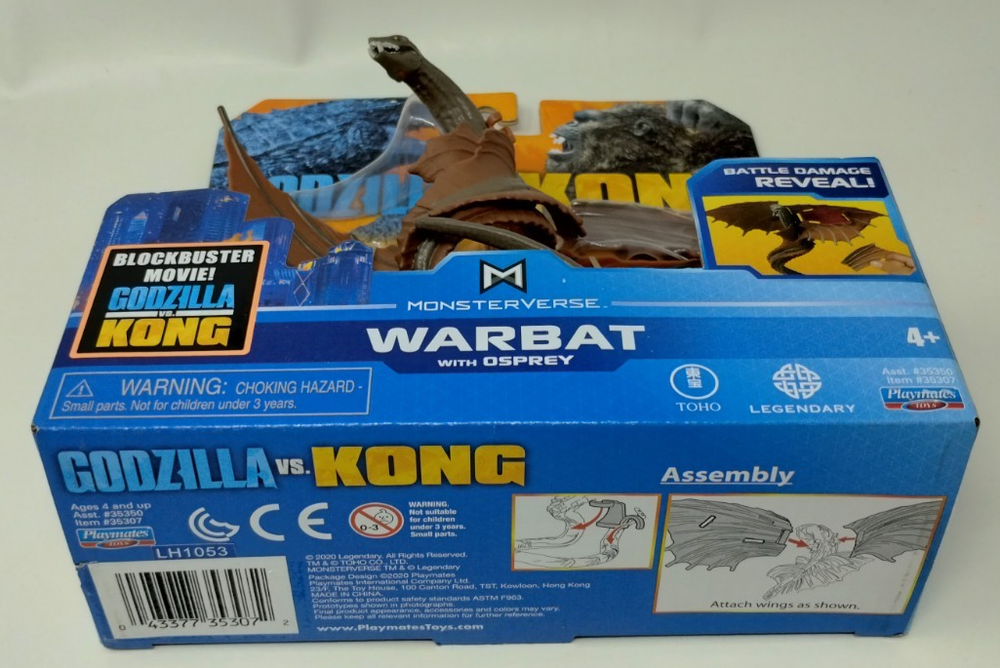 NEW Godzilla Vs Kong Monsterverse WARBAT WITH OSPREY 6 Inch Playmates 2020 New. Expect packaging to have wear, corners, edges, surfaces. Sticker residual on bottom surfaces over the barcode. See photos. Check Out My Other Godzilla Items Here: https://ebay.us/FHqUuH Ship to USA and Canada - Will ship internationally - Ask for rate
