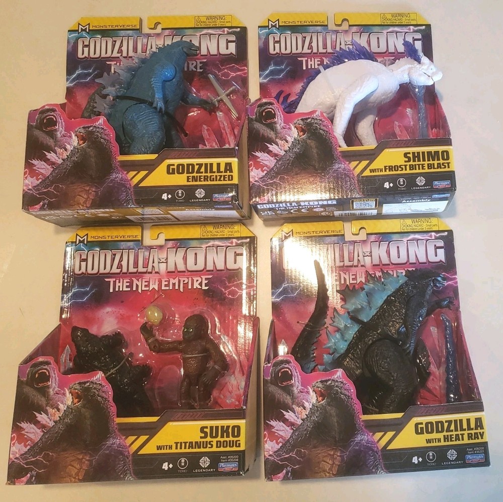 Brand New and Sealed. - Godzilla Energized - Godzilla with Heat Ray - Shimo with Frost Bite Blast - Suko with Titanus Doug Ships carefully, well packed in a sturdy box! Let me know if you have any questions and thanks for looking.