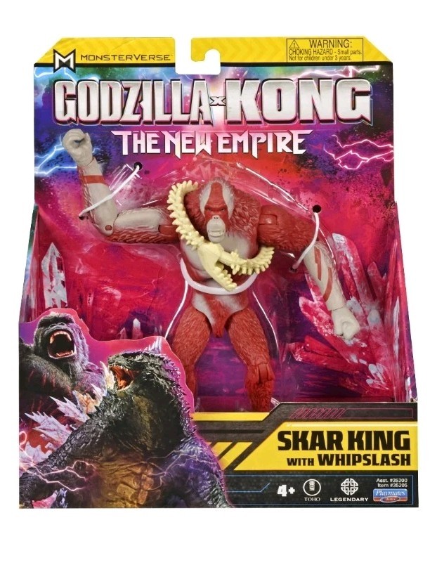 The Godzilla X Kong- New Empire- SKAR KING With Whiplash- 6" Figure is an action figure representing the character Skar King from the Godzilla franchise and King Kong series. Made of ABS plastic, this multicolor figure stands at 6 inches tall and comes boxed, making it an ideal collectible for fans of the TV, movie, and video game themes. The adjustable features add to the playability of this original licensed reproduction from Playmates Toys, perfect for children aged 6 and above who enjoy imaginative play with action figures.