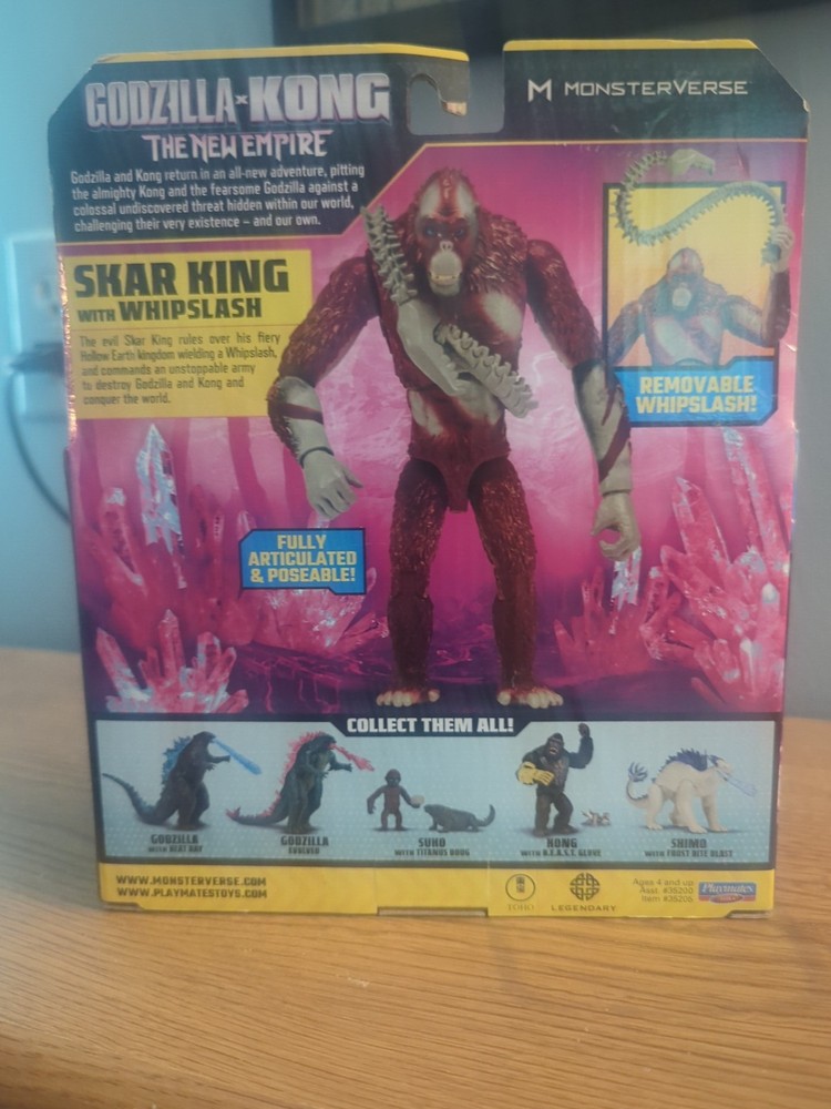The Godzilla X Kong- New Empire- SKAR KING With Whiplash- 6" Figure is a colorful and detailed action figure featuring the character Skar King from the King Kong franchise. Made of ABS plastic and standing at 6 inches tall, this figure is part of the 2024 release and is suitable for ages 6 and up. It comes boxed and adjustable, making it a great collectible item for fans of the TV and movie series. With its unique design and original license, this figure is a must-have for any action figure enthusiast.