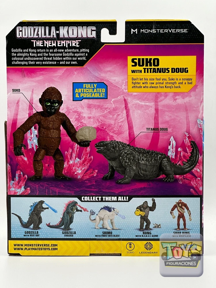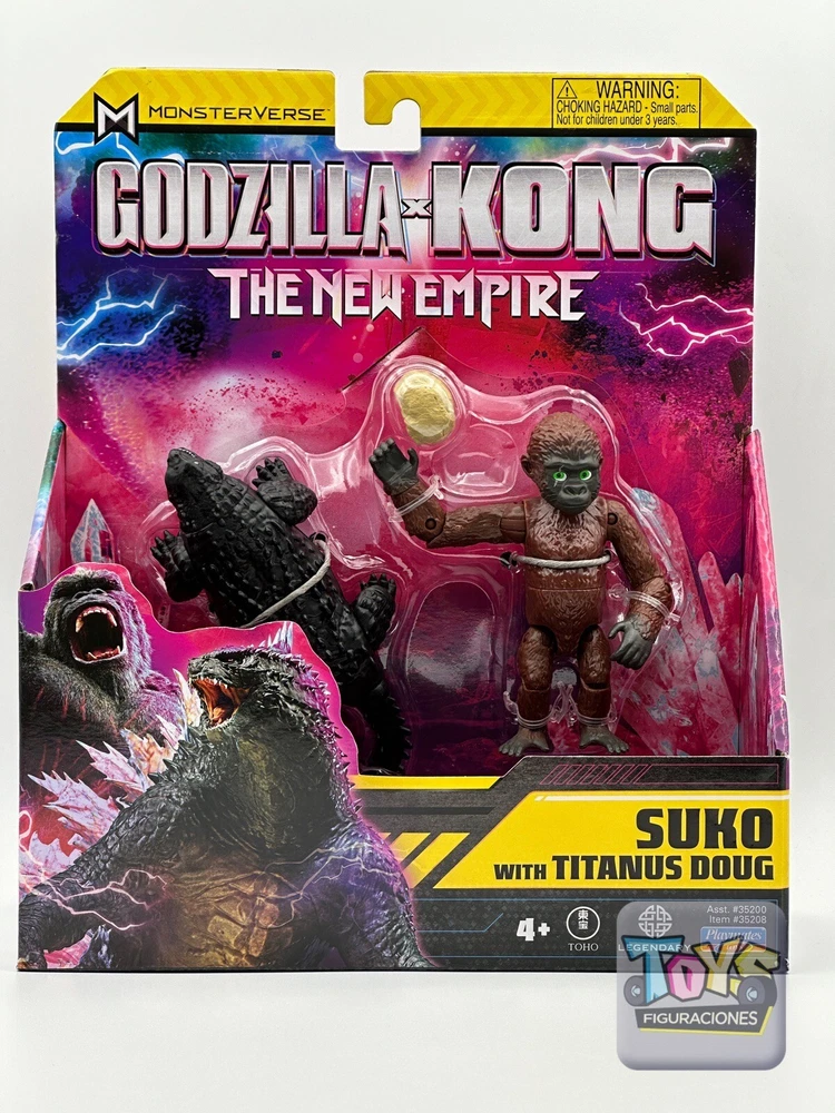 Introducing the Godzilla X Kong New Empire Suko With Titanus Doug 4" Figure by Playmates Toys. This highly detailed action figure is a must-have for fans of the MonsterVerse franchise. The figure features Suko, a new character in the upcoming film, riding on top of Titanus Doug, a massive creature that can only be described as a living mountain. The figure is brand new and has never been opened or displayed. The packaging is in excellent condition and will be carefully packaged for shipping. This is a rare opportunity to own a piece of the Godzilla X Kong universe before the film's release in 2024. Don't miss out on your chance to add this incredible figure to your collection.