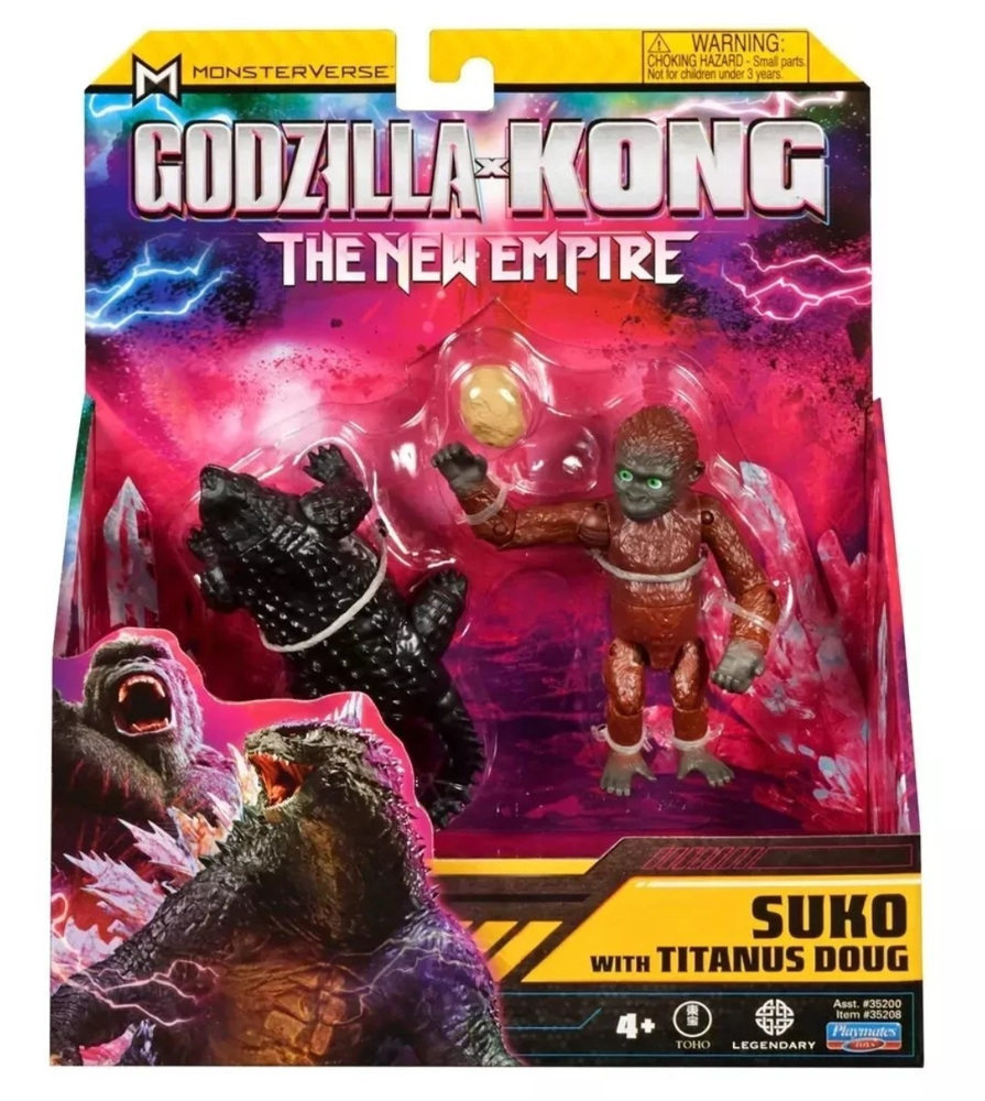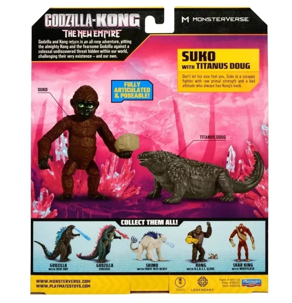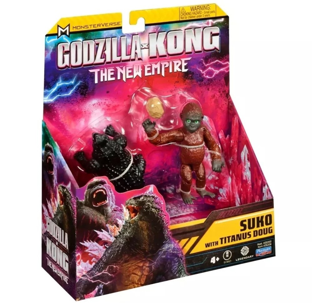 🆕 Monsterverse Godzilla X Kong New Empire Suko with Titanus Doug 4" Action Figure by Playmates 2024. Condition: New Standard Shipping, usually ships within 2 business days or less UPC: 043377352082 Return to Hollow Earth with Godzilla and Kong in an all-new adventure! When a colossal threat is discovered within our world, Godzilla and Kong must fight to protect their existence—and our own. The Godzilla x Kong 6” Suko with Titanus Doug Figure brings the Son of Kong to your collection, with epic new details that capture his movie look. Set includes Titanus Doug Figure and comes in a unique Godzilla X Kong package! AUTHENTIC: The Godzilla x Kong 6” Suko and Titanus Doug Figures are highly detailed with intricate designs to capture the essence of the Son of Kong and his tiny-yet-mighty ally. From Suko’s boulder accessory to his realistic expression, every detail is made to match the new movie, ensuring an authentic representation of this iconic character BATTLE POSES: Standing 6” tall, the Suko figure is ready to reign over any display or play setting. With multiple points of articulation and his signature handheld boulder, Suko is ready for action, so you can recreate your favorite scenes from his epic battles TINY TITAN: Titanus Doug is ready to steal the show—and some food from Kong! Bring home the action with Hollow Earth’s favorite titan, decorated to match his movie design COLLECT THEM ALL: Complete your monstrous collection with other figures and accessories from the new Godzilla x Kong line. Choose from a wide range of characters, including old allies, dangerous foes, and new challengers to recreate epic battles and awesome new adventures! Build your very own MonsterVerse with Playmates Toys .