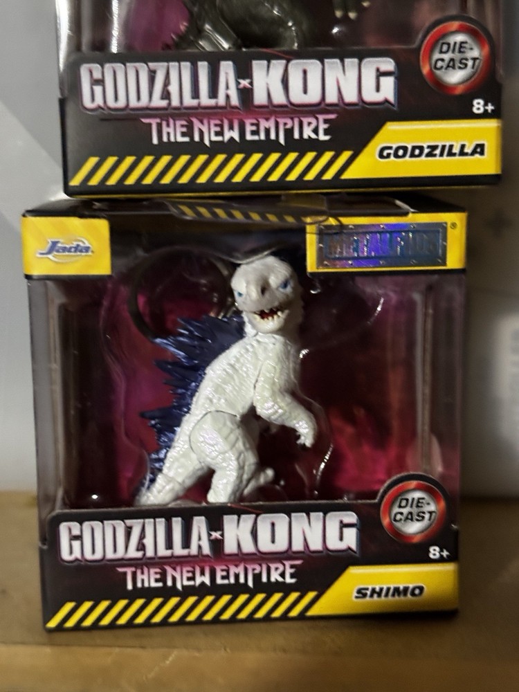 The Godzilla X Kong The New Empire Godzilla Shimo Jada Metalfigs Key Chains are exclusive collectibles from the San Diego Comic Con event in 2023. This set features key chains of Godzilla, King Kong, and a unique character from the Godzilla x Kong TV show. Made of black plastic and measuring 1.5 inches in length and 2.5 inches in height, these figures are part of the Godzilla franchise and are licensed by Jada Toys. Perfect for fans of the MonsterVerse and collectors of action figures, these key chains offer a glimpse into the world of animated adventures.