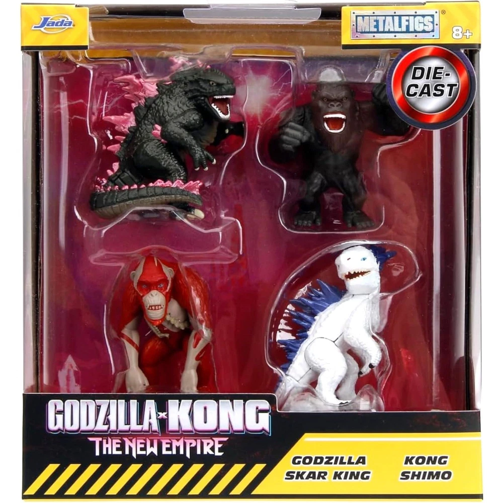 Godzilla X Kong The New Empire Godzilla, Skar King, Kong, and Shimo MetalFigs It's always a thrilling time with these iconic monsters. Featuring authentic characters from the movie Godzilla X Kong, each Die-Cast metal figure has sculpt and paint execution unique to each character. Godzilla, King Kong, Skar, Shimo are all featured in this Metalfigs 4 pack and ready for menacing terror. NANO GODZILLA X KONG: Bring home all your favorite Godzilla X Kong characters as new Nano Metal figs from Jada Toys! CHARACTERS INCLUDE: Godzilla, King Kong, Skar, and Shimo. COLLECTIBLE SIZE: each mini figure measures approximately 2.5 inches tall - the perfect size for your office desk, home bookshelf and so much more! GREAT GIFT IDEA: Add this collectible die-cast figure set to your own collection or gift it to the Godzilla fan in your life! 4 pack! B0CQTVXZD3 Brand new & in mint condition including the box. Please zoom in on the pictures to see condition details. Brand new, case fresh! Thanks for shopping with Keith & Deb at We-R-Toys All of our items are from a clean, smoke free, pet free environment. We ship FAST and Pack with CARE