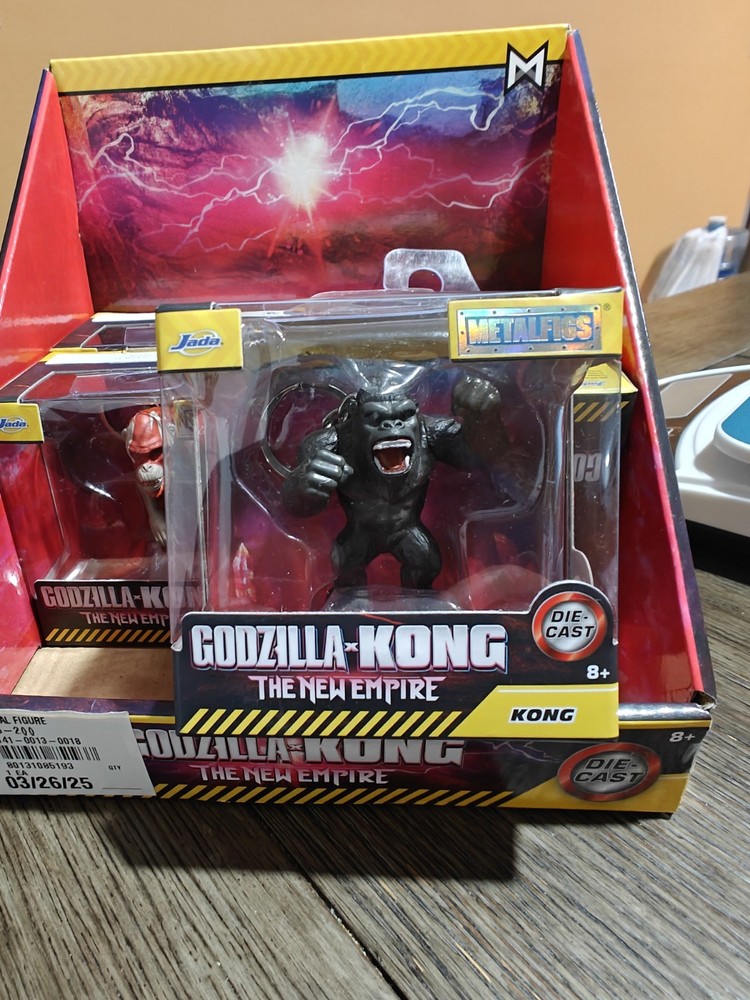 The product is a 2.5" die-cast figure of KONG from the Godzilla X Kong The New Empire series by Jada. This collectible item is themed around Godzilla and is recommended for ages 8 and up. It is manufactured in China and does not contain any California Prop 65 Warning. With its detailed design and high-quality construction, this figure is sure to be a popular addition to any toy collection, especially for fans of Godzilla and action figures.