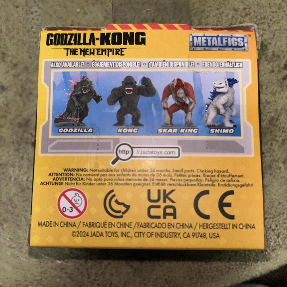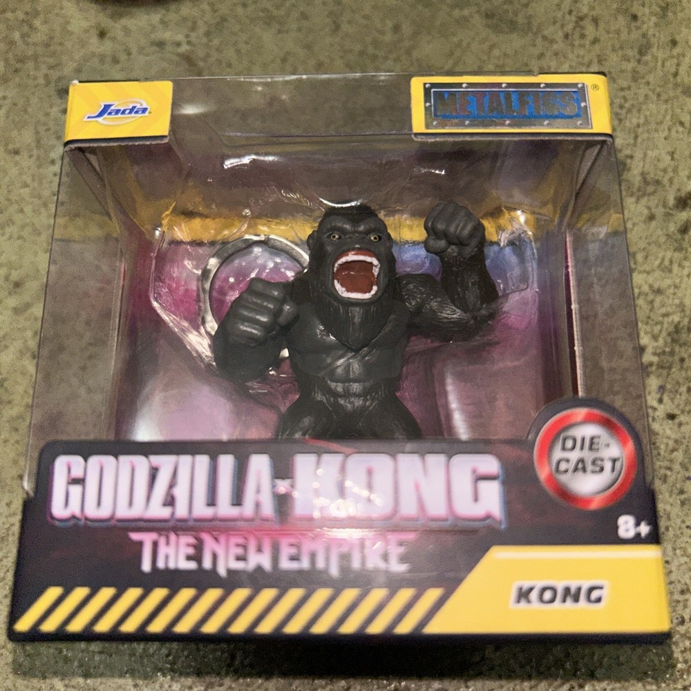 The Godzilla X Kong The New Empire Kong Jada Metalfigs Keychain Toy is a collectible action figure based on the characters Godzilla and King Kong from the TV show "Godzilla vs King Kong". This exclusive, boxed item features a black plastic and metal design, measuring 1.5 inches in length, 2.5 inches in height, and 2 inches in width. Manufactured in 2023 by Jada Toys as part of the King Kong series, this keychain toy appeals to fans of the MonsterVerse and King Kong franchise, making it a perfect addition to any collection or display.