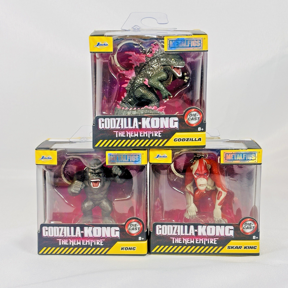 Godzilla X Kong • The New Empire • Metal Figs 2.5” • BRAND NEW • Lot Of 3 These action figures include characters like Godzilla, Kong, and Skar King, and are part of the Monsterverse Metal Figs series by Jada Toys. Made of die-cast material, these figures are boxed and are ideal for fans of the Godzilla X Kong TV show and movie. Perfect for collectors and enthusiasts, these figures capture the essence of the iconic characters in a unique and detailed design.