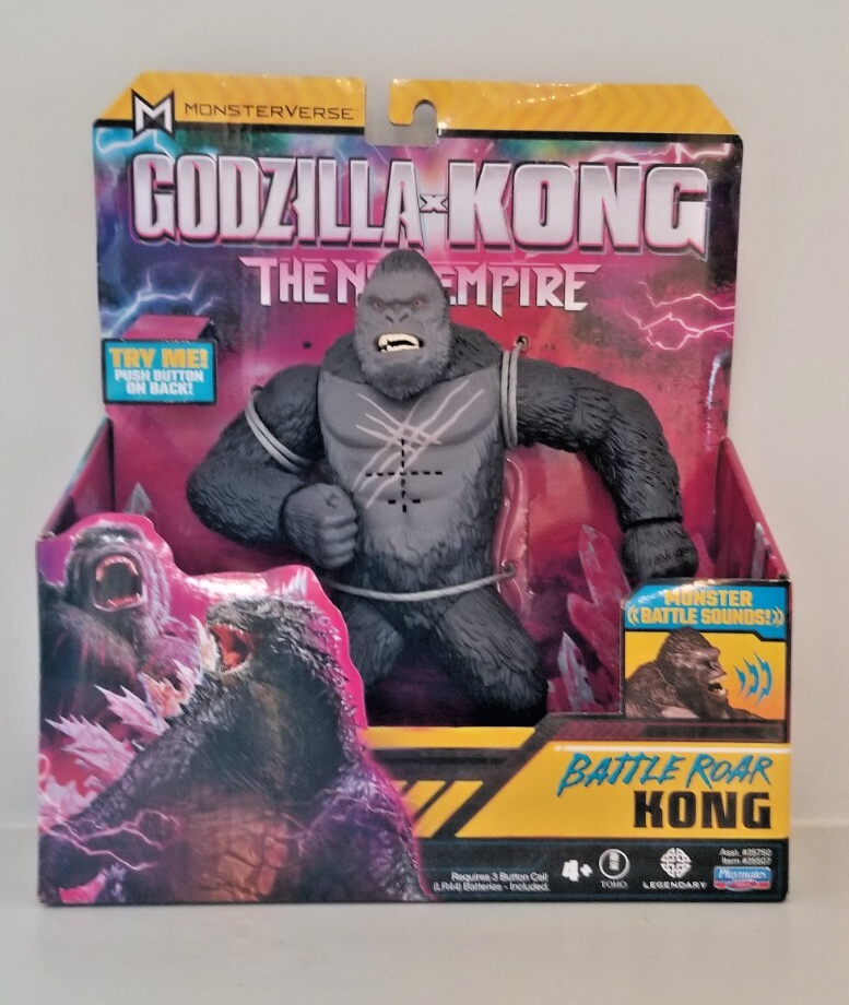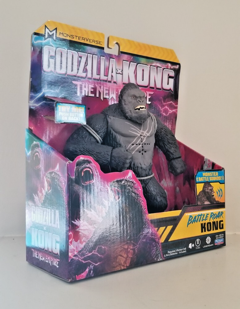 The Godzilla X Kong - the New Empire Kong Battle Roar 7" Figure is an action figure inspired by the iconic character King Kong from the Godzilla franchise. Made of plastic and standing at 7 inches tall, this black-colored figure features a battery-powered sound feature, making it come to life just like in the movie Godzilla vs. Kong. Packaged in its original packaging, this toy is suitable for children aged 5-7 years and is a must-have for fans of the Godzilla series. Perfect for imaginative play and display, this action figure brings the excitement of the movie to life right in your hands.