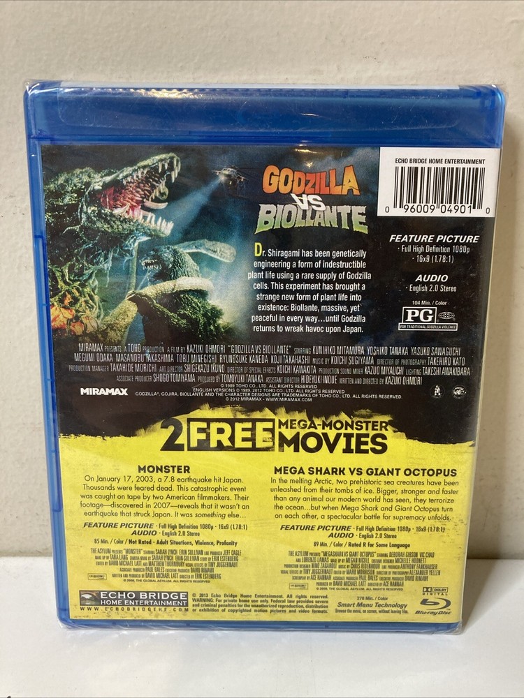 Godzilla vs. Biollante / Monster / Mega Shark vs. Octopus (Blu Ray, 2013). Brand new factory sealed item! Please see photos. U.S. shipping only. We can only ship to the address you enter at checkout. Please make sure it is correct. Contact with any questions!