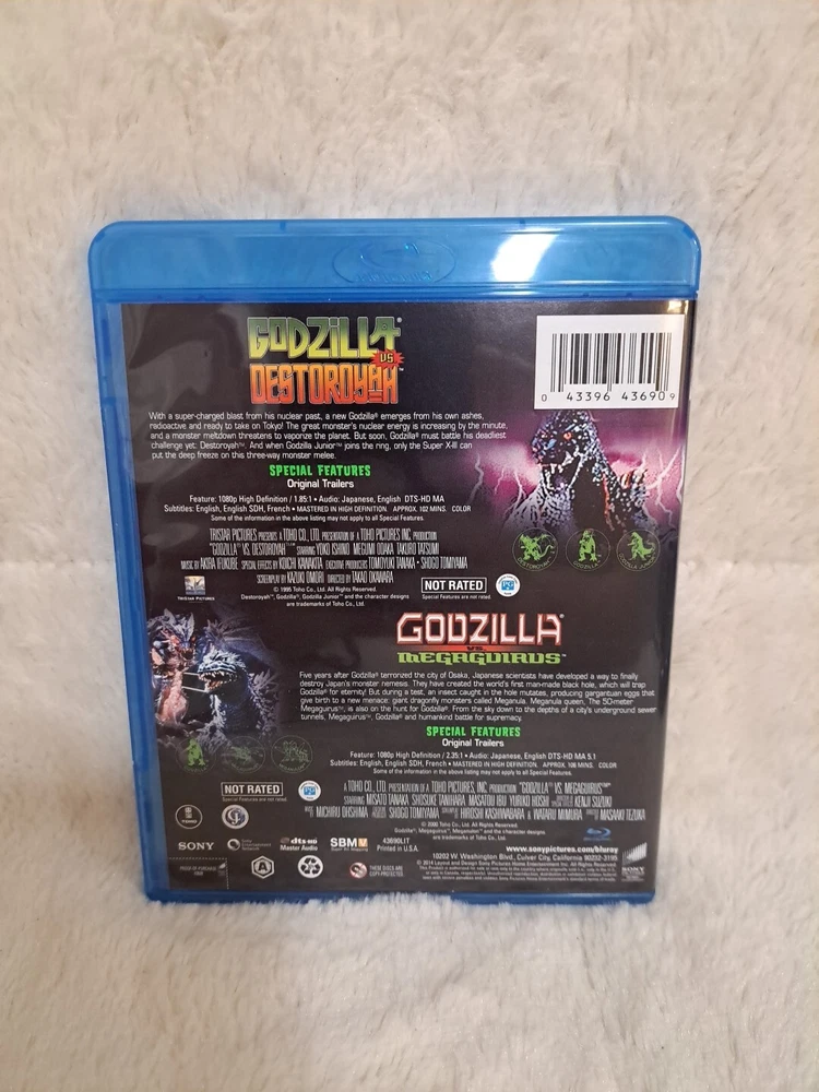 Experience the ultimate battle between Godzilla and his rivals with this Blu-ray double feature set. Featuring the films "Godzilla vs Destoroyah" and "Godzilla vs Megaguirus. This set is a must-have for any fan of the sci-fi contemporary genre. In excellent condition! Visit and follow the store for more great finds!!