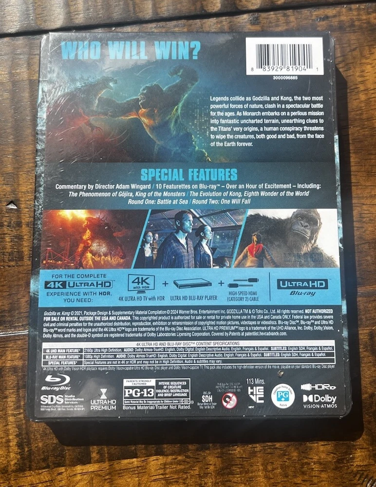 This epic showdown between two legendary monsters is now available in stunning 4K UHD Blu-ray format. The Godzilla vs. Kong Steelbook Edition is a must-have for any collector or fan of the franchise. This Blu-ray is region code A, compatible with players in the Americas and Southeast Asia. Experience the heart-pounding action and stunning visuals of the ultimate battle between Godzilla and Kong. This Steelbook Edition is a perfect addition to any movie collection or as a gift for a fellow fan. Don't miss out on this collector's item that is sure to impress.