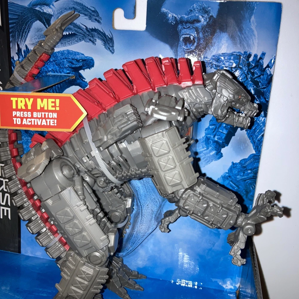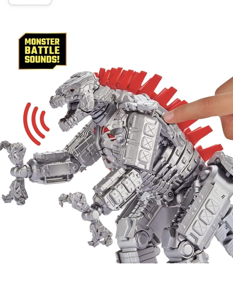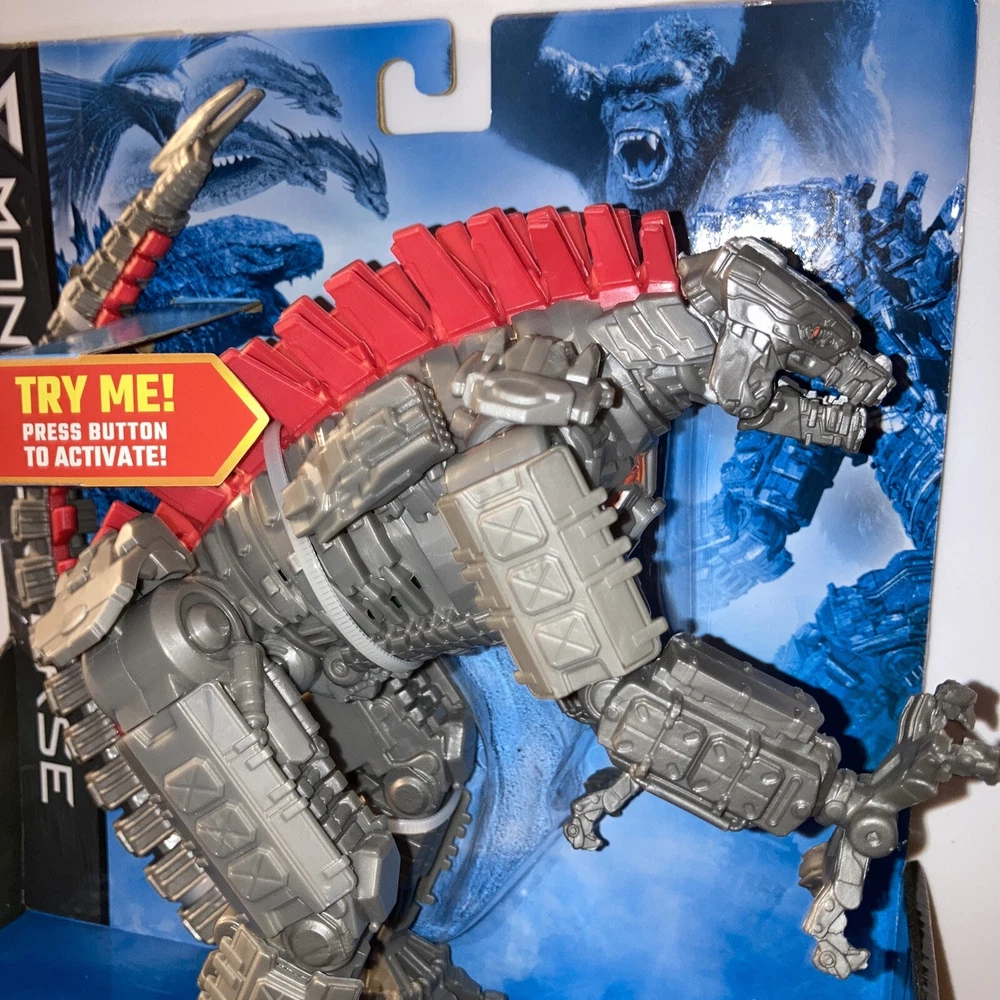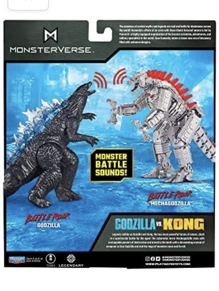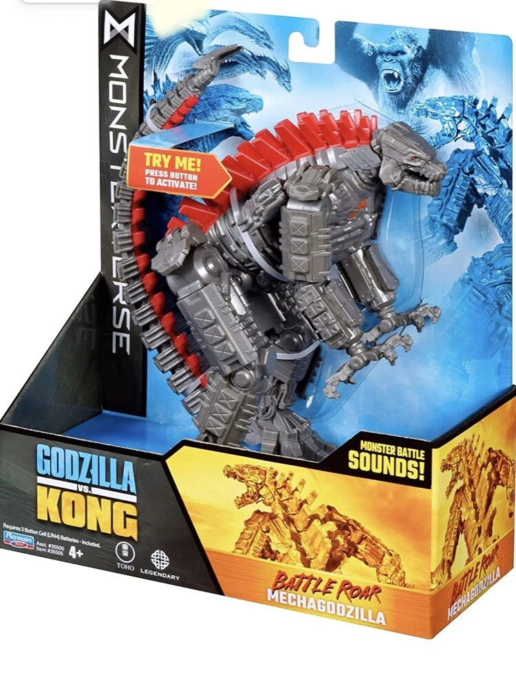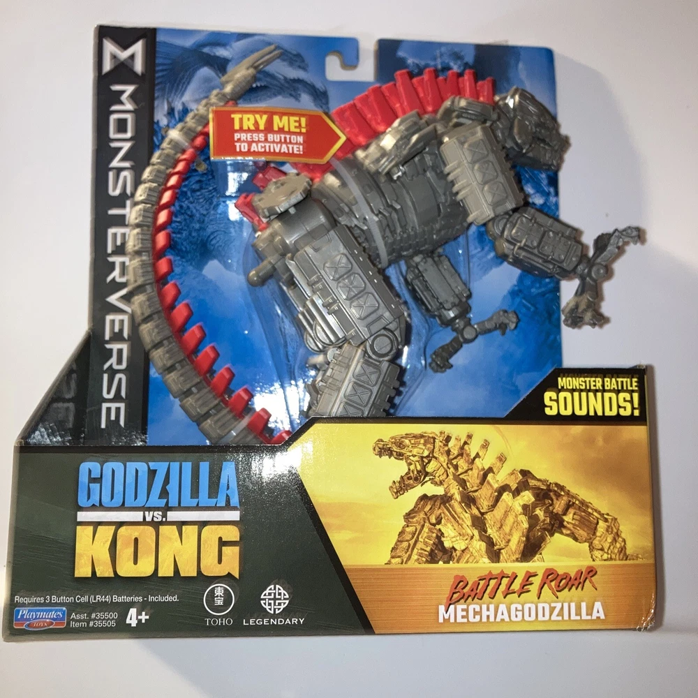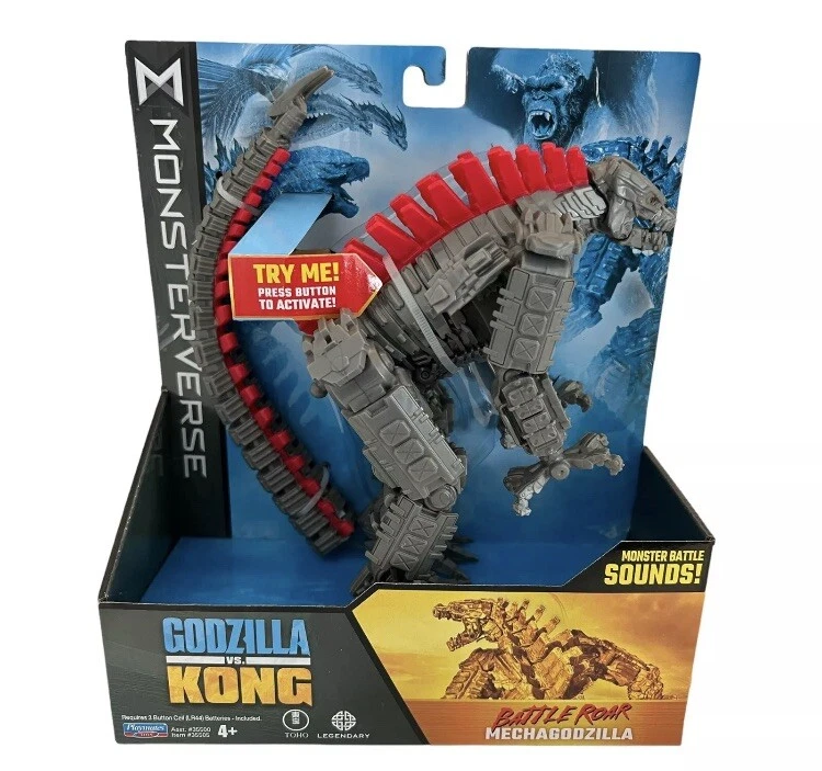 Godzilla vs Kong Battle Roar Mechagodzilla Sound 6" Figure Monsterverse 2022. Legends collide as Godzilla and Kong, the two most powerful forces of nature, clash in a spectacular battle for the ages! The monster war rages on the surface and deep within our world as the spectacular secret realm of the titans known as the Hollow Earth is revealed! Features & details A robotic Apex predator with unstoppable powers of laser destruction, Mechagodzilla was created in secret to destroy Godzilla and end the reign of monsters! Battle Roar Mechagodzilla stands at 7" tall and has monster battle sounds! Press the button on Mechagodzilla's side to open his mouth and activate his battle roar! Designed and sculpted based on the 2021 blockbuster movie, Godzilla vs. Kong!