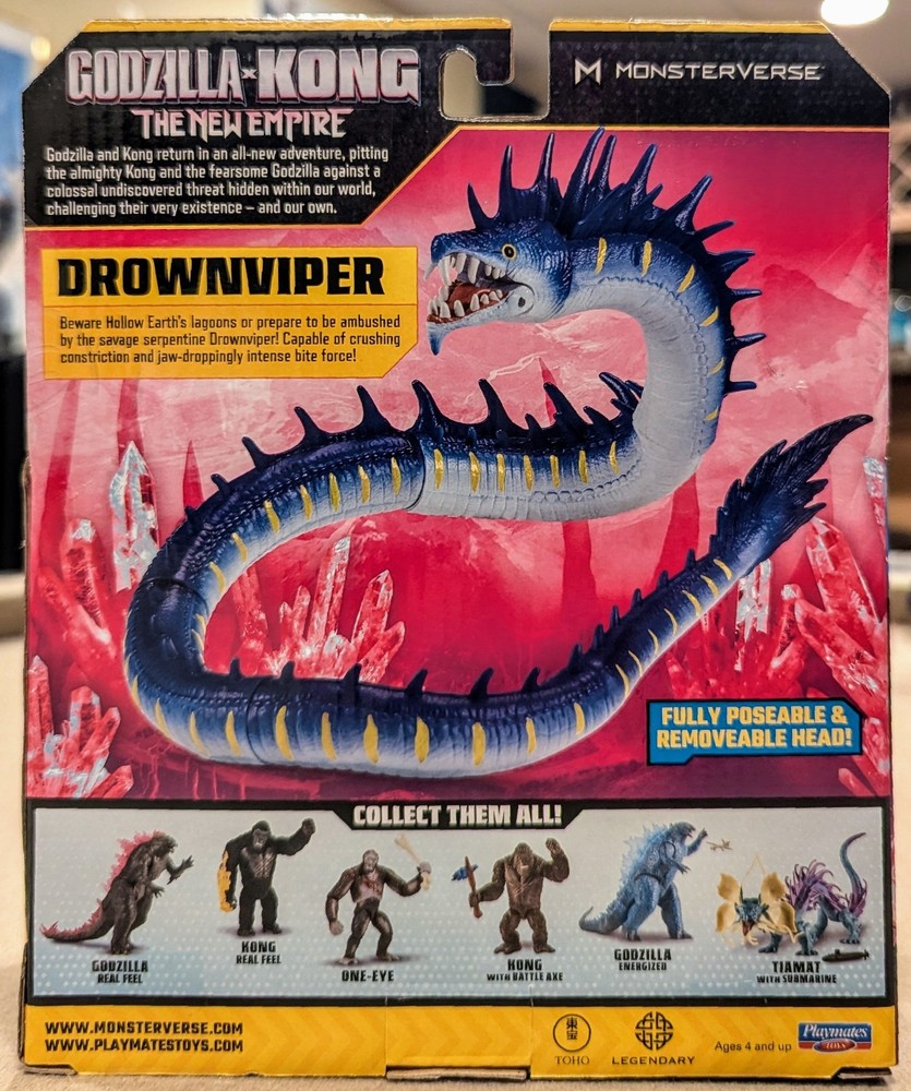 The Godzilla x Kong: Drownviper Empire Monsterverse Collectible Figure by Playmates Toys is a 1:12 scale plastic action figure based on the character DROWNVIPER from the Godzilla x Kong The New Empire movie. This multicolored figure is part of the Monsterverse series and features articulation for imaginative play. Suitable for ages 4 and up, this licensed reproduction toy is a must-have for fans of the Godzilla x Kong franchise. Made in China in 2024, this collectible figure is a great addition to any action figure collection. This item is BRAND NEW in original packaging. Received this as a gift and already had the action figure so I put the brand new on up for sale. Check my feedback, 100% positive! Bid with confidence.