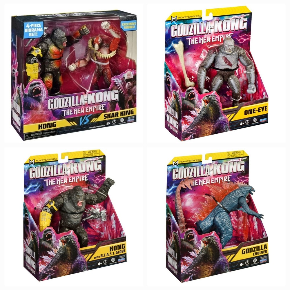 🆕 4-Packages of Godzilla x Kong - The New Empire: Kong vs Skar King Diorama, Kong with B.E.A.S.T. Glove, One-Eye and Godzilla Evolved 6" Action Figures. Condition: New Standard Shipping, usually ships within 2 business days or less Included in the Lot: 4 Packages, 1 of Kong vs Skar King, 1 of Kong with B.E.A.S.T. Glove, 1 of Skar King and 1 of Godzilla Evolved UPC: 043377357964 - Kong vs Skar King, 043377352044 - Kong with B.E.A.S.T. Glove, 043377352136 - One-Eye, 043377352020 - Godzilla Evolved with Heat Ray Kong vs Skar King: Return to Hollow Earth with Godzilla and Kong in an all-new adventure! When a colossal threat is discovered within our world, Godzilla and Kong must fight to protect their existence—and our own. The Godzilla x Kong Versus 2-Pack brings an epic battle to your collection, with exclusive decoration that captures each figure’s detailed movie look. Set includes exclusively detailed 6” Kong and Skar King figures, four diorama set pieces, Kong’s H.E.A.V. Vehicle, and Skar King’s Whipslash. They come in a unique Godzilla x Kong package! Authentic Design: These Godzilla x Kong 6" figures feature highly detailed designs with exclusive decoration that captures the essence of Kong and Skar King, ensuring an authentic representation of their iconic characters Accessories Included: Enhance your playtime or display with Kong’s H.E.A.V. Vehicle and Skar King’s menacing Whipslash, each featuring exclusive detailing for added realism Scene Creation: Build your own Hollow Earth with exclusive diorama set pieces inspired by the new Godzilla x Kong movie, allowing you to recreate your favorite battle scenes Movie Packaging: The figures are packaged in bright, bold Godzilla x Kong packaging, inspired by the fearsome Hollow Earth landscape from the film Collectible Series: Complete your collection with other figures and accessories from the Godzilla x Kong line, featuring a variety of characters to recreate epic battles and adventures in the MonsterVerse Kong with B.E.A.S.T. Glove: Return to Hollow Earth with Godzilla and Kong in an all-new adventure! When a colossal threat is discovered within our world, Godzilla and Kong must fight to protect their existence—and our own. The Godzilla x Kong 6” Kong brings the King of Skull Island to your collection, with epic details that capture his new movie look. Set includes Kong’s B.E.A.S.T. Glove and comes in a unique Godzilla X Kong package! The Godzilla x Kong 6” Kong figure is highly detailed with intricate designs to capture the essence of the King of Skull Island. From his destructive B.E.A.S.T. Glove to imposing figure, every detail is made to match the new movie, ensuring an authentic representation of his iconic character. Bring the action home with Kong’s destructive B.E.A.S.T. Glove. The B.E.A.S.T. Glove is highly detailed to match his movie design, adding a realistic element to your playtime or display. Standing 6” tall, the Kong figure is ready to reign over any display or play setting. With multiple points of articulation, Kong is ready for action, so you can recreate your favorite scenes from his epic battles. Complete your monstrous collection with other figures and accessories from the new Godzilla x Kong line. Choose from a wide range of characters, including old allies, dangerous foes, and new challengers to recreate epic battles and awesome new adventures! Build your very own MonsterVerse with Playmates Toys. AUTHENTIC: The Godzilla x Kong 6” Kong figure is highly detailed with intricate designs to capture the essence of the King of Skull Island. From his destructive B.E.A.S.T. Glove to imposing figure, every detail is made to match the new movie, ensuring an authentic representation of his iconic character GLOVE ACCESSORY: Bring the action home with Kong’s destructive B.E.A.S.T. Glove. The B.E.A.S.T. Glove is highly detailed to match his movie design, adding a realistic element to your playtime or display BATTLE POSES: Standing 6” tall, the Kong figure is ready to reign over any display or play setting. With multiple points of articulation, Kong is ready for action, so you can recreate your favorite scenes from his epic battles COLLECT THEM ALL: Complete your monstrous collection with other figures and accessories from the new Godzilla x Kong line. Choose from a wide range of characters, including old allies, dangerous foes, and new challengers to recreate epic battles and awesome new adventures! Build your very own MonsterVerse with Playmates Toys One-Eye: Unleash the fury of the Godzilla x Kong One-Eye Action Figure! As Skar King’s brutal lieutenant, One-Eye is a fierce Titan warrior who wields his massive bone club to dominate Great Apes and any challengers to his ruler. With full articulation and poseability, this action figure is ready for battle against Godzilla, Kong, and other fearsome Titans. Designed with intricate sculpting and battle-worn details, One-Eye is a must-have addition to any Monsterverse collection. Ages 4 and up. Godzilla x Kong One-Eye Action Figure – A powerful new Titan and Skar King’s ruthless lieutenant from Godzilla x Kong: The New Empire. Fully Poseable Design – Features multiple points of articulation for epic battle poses and display. Includes Bone Club Accessory – One-Eye wields his signature weapon to crush enemies in battle. Highly Detailed Sculpting & Authentic Colors – Designed with movie-accurate details, scars, and battle-worn textures. Perfect for Collectors & Fans Ages 4+ – Expand your Monsterverse collection with this fierce and formidable Titan. Godzilla Evolved: Return to Hollow Earth with Godzilla and Kong in an all-new adventure! When a colossal threat is discovered within our world, Godzilla and Kong must fight to protect their existence—and our own. The Godzilla x Kong 6” Godzilla Evolved brings the King of Monsters to your collection, with epic new details that capture his evolved form. Set includes Godzilla’s Heat Ray pow