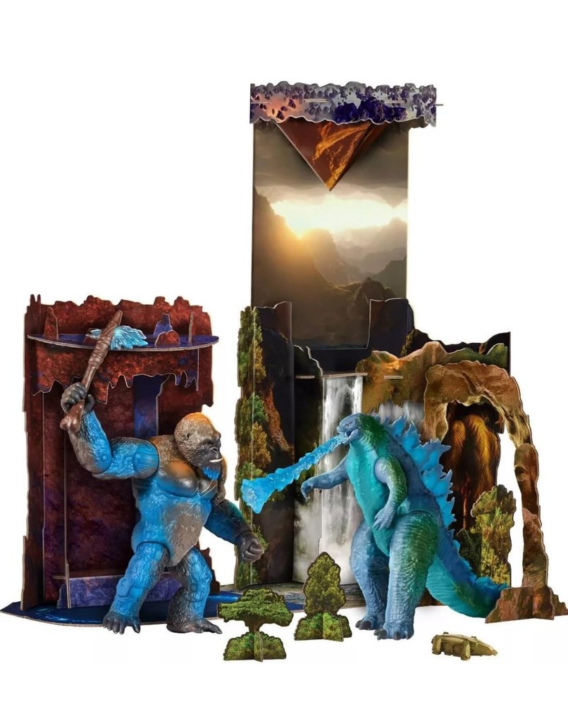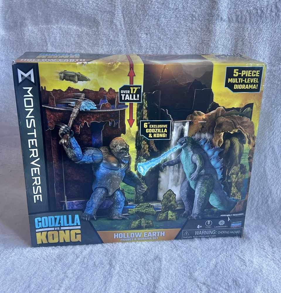 Brand new sealed box 6" Godzilla and Kong figures are articulated for battle-ready poses Also includes Godzilla's Heat Ray, Kong's Battle Axe, HEAV Vehicle and Jet Fighter accessories Both figures come with “battle damage” feature—remove to reveal the powerful impact of their terrible clash Multi-piece, multi-level Hollow Earth diorama to reenact the exploration of Hollow Earth as seen in the 2021 movie Harness the awesome power of Godzilla's thunderous roar and devastating tail-swipe as he battles the powerful Kong to settle an ancient rivalry