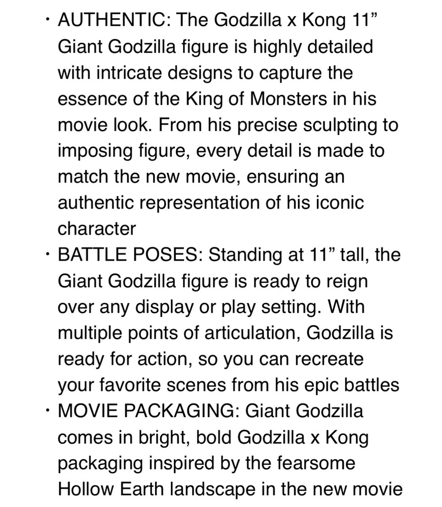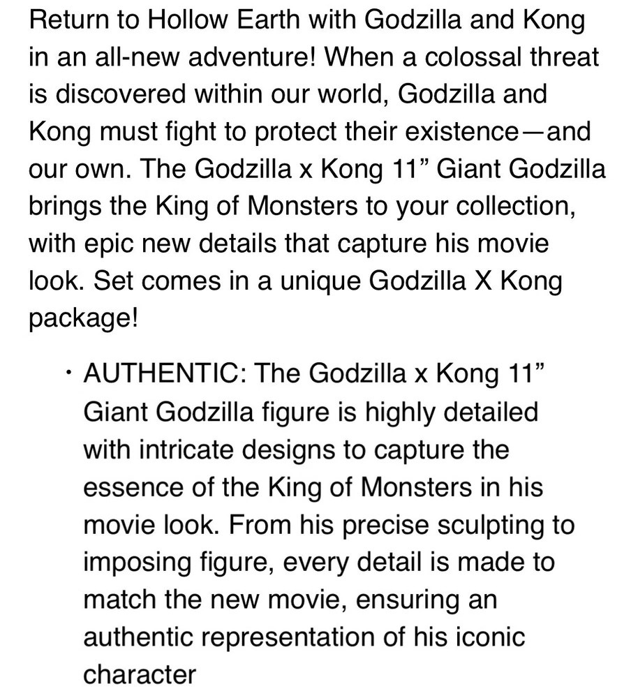 The "Godzilla x Kong The New Empire: 11" Giant Godzilla Figure" by Playmates Toys is a multicolored action figure based on the character Godzilla from the movie "Godzilla vs. Kong". Standing at 11 inches tall and weighing 2.5 lb, this collectible figure is designed for children aged 4 years and up. Made of plastic, it is part of the Godzilla x Kong product line and features detailed craftsmanship to resemble the iconic monster. Perfect for fans of the Godzilla and Kong movies, this giant Godzilla figure offers a fun and imaginative play experience.