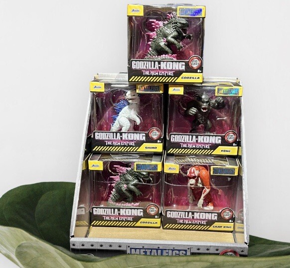 Brand new and sealed. Ships same day or next in a box with tracking via USPS You’ll receive the complete set of 4: Godzilla, Kong, Shimo and Skar King. PLUS, an extra Godzilla along with the cardboard display that you see in the picture. Total 5 figs and a display.