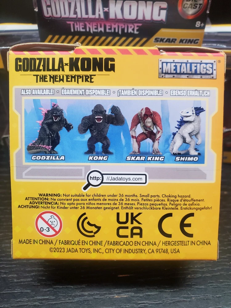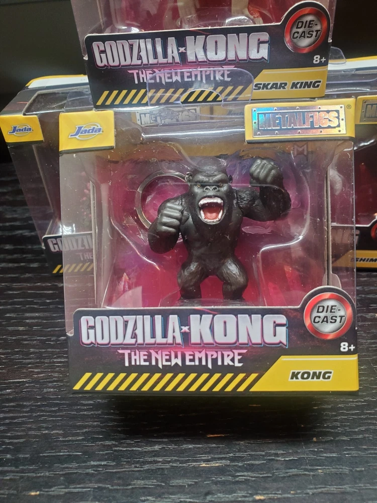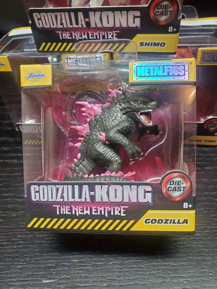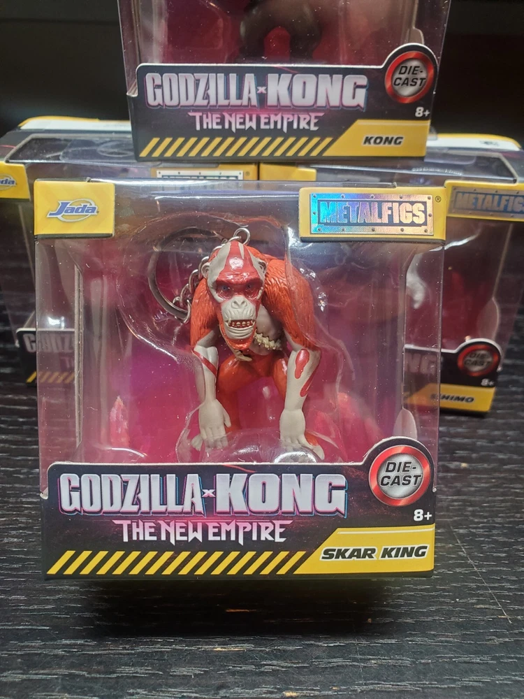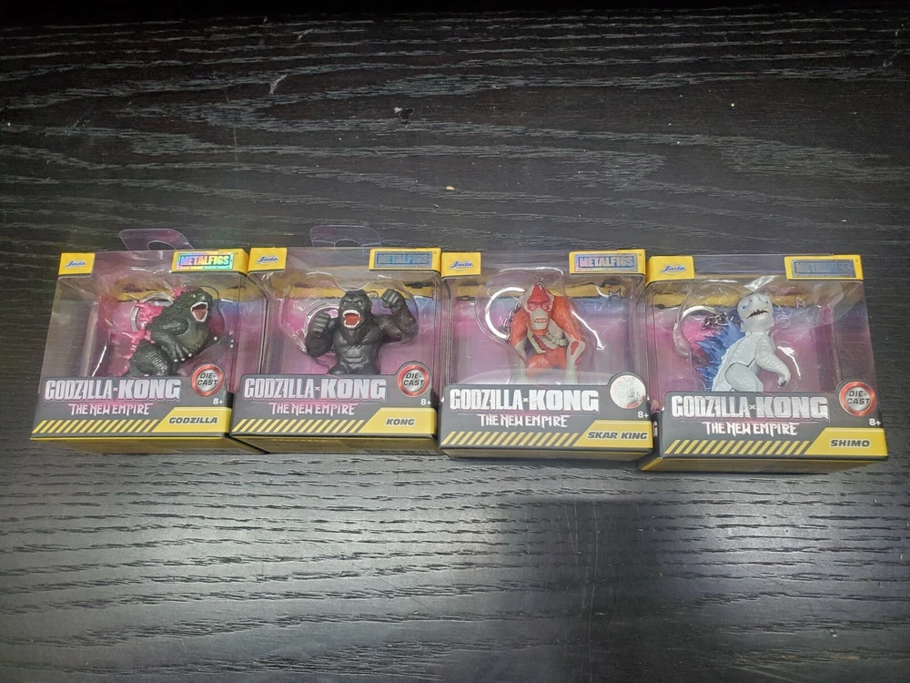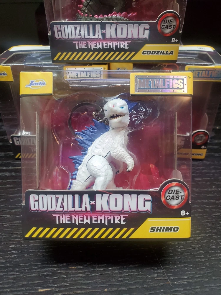 Get your hands on this exclusive set of four Godzilla x Kong: The New Empire Metalfigs Keychains by Jada Die-cast. The set includes four highly detailed action figures of Godzilla, Shimo, Skar King, and Kong. Each item of the set has a height of 2.25 inches and is made of diecast material. Perfect for collectors and fans of the Godzilla franchise, this original and licensed reproduction item is suitable for children aged 8 years and up. The set comes in a unit quantity of four and is a must-have addition to your TV, movie, and video game-themed collection.