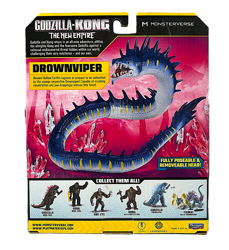 Godzilla x Kong: The New Empire Drownviper 7" Action Figure Monsterverse NEW Brand New in Package Embark on an epic adventure with the Playmates Godzilla x Kong: The New Empire Drownviper 7" Action Figure, a must-have for fans of the iconic franchise. Crafted with precision from durable plastic, this figure stands at an impressive 7 inches and captures the essence of the fierce creature from the upcoming film. Its detailed design is rooted in the rich lore of the Godzilla universe, making it a prized collectible for enthusiasts and collectors alike. The action figure boasts an original licensed design, straight from the sets of "Godzilla x Kong: The New Empire," ensuring authenticity and a high-quality collectible experience. With its intricate detailing and movable features, the Drownviper figure is perfect for recreating scenes from the movie or displaying as part of your Monsterverse collection. Delve into the world of TV, movie, and video games with this stunning representation of the legendary creature.