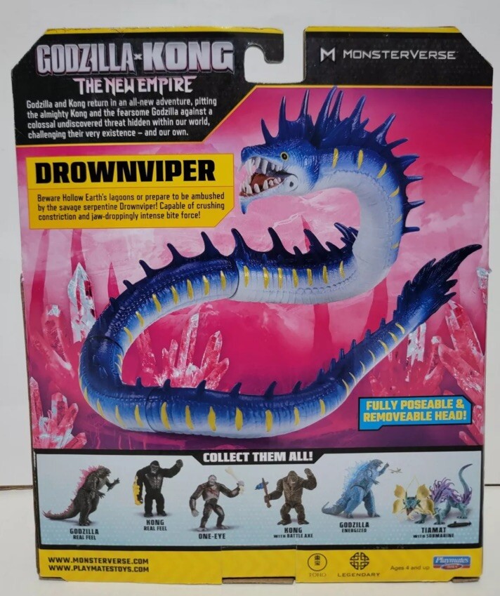 Embark on an epic adventure with the Godzilla x Kong: The New Empire Drownviper 7" Action Figure, a must-have for fans of the iconic franchise. Crafted with precision by Playmates, this figure brings to life the formidable character from the latest installment of the Godzilla series. With its detailed plastic construction, it's a standout representation of the legendary creature, boasting an impressive likeness to the character's appearance in the film. Collectors and enthusiasts will appreciate the attention to detail in this original licensed reproduction, including the ship-like vehicle that Drownviper is known for. Whether for display or to recreate the epic battles from the 'Monsterverse' TV show, this action figure is an excellent addition to any collection. Its vibrant colors and dynamic pose make it a striking piece, capturing the essence of the Godzilla legacy. Please check out my other items for sale. Free shipping!