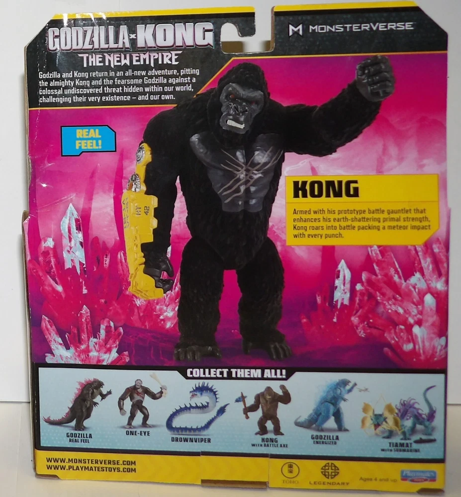 The product is an action figure from the Monsterverse of Godzilla x Kong: The New Empire franchise, specifically featuring Kong with a "Real Feel" design. It is manufactured by Playmates in China and is recommended for children aged 4 and above. The toy brings the iconic themes of King Kong to life, appealing to fans of the franchise and offering a fun and interactive play experience for children within the recommended age range.