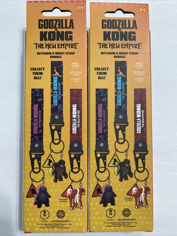 This Godzilla x Kong The New Empire Keychain & Wrist Strap set is a must-have for any fan of the Monsterverse franchise. The set includes two keychain/wrist straps featuring the iconic Skar King and King Kong characters from the movie. The straps are made of durable rubber material and come with a 2-inch height. The set is an original, licensed reproduction and comes boxed with collectible features. It is perfect for children aged 5-7 years and is a great addition to any movie-themed toy collection. The Godzilla x Kong Keychain & Wrist Strap set is a great way to show your support for the Monsterverse franchise and is a perfect gift for any fan.