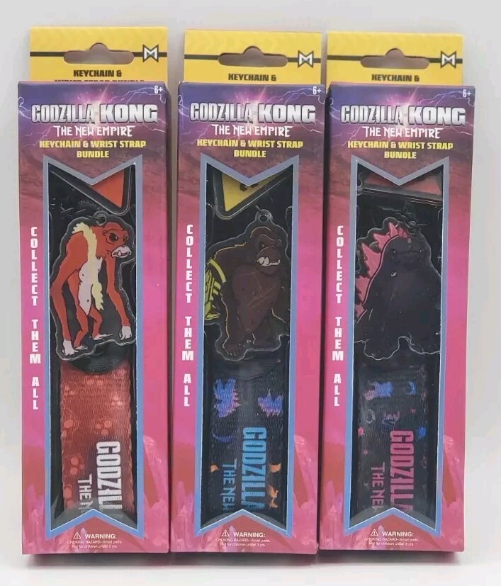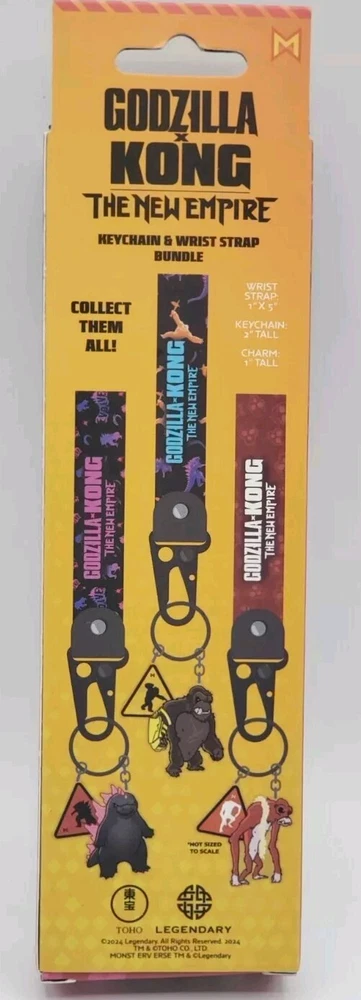 This Godzilla x Kong The New Empire Keychain & Wrist Strap set is a must-have for fans of the legendary movie franchise. The set includes three collectible keychains/wrist straps featuring the iconic characters Godzilla, Kong, and Skar King. Each keychain/wrist strap measures 2 inches in height and is made of high-quality materials. The set comes in a complete box and is an original, licensed reproduction from the Monsterverse brand. Perfect for kids aged 6 and above, this set is a great addition to any Godzilla x Kong collection.