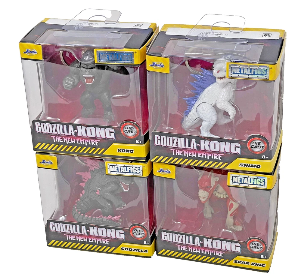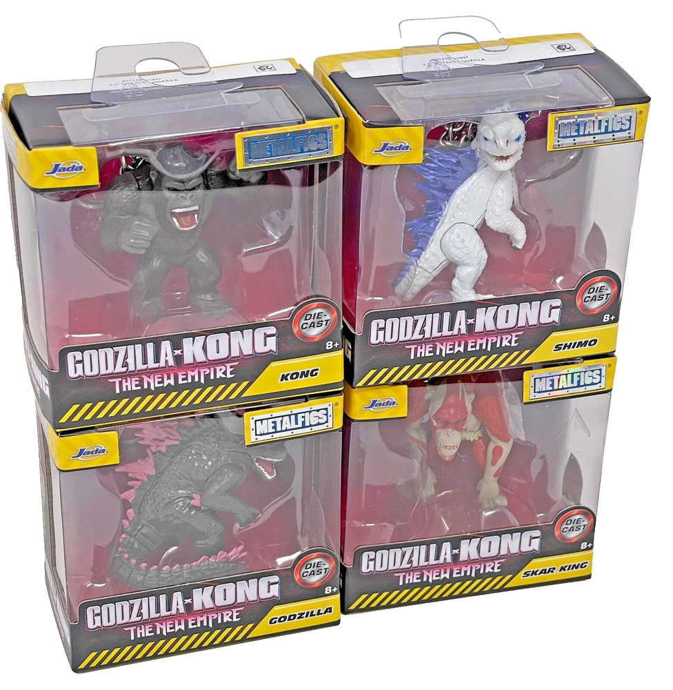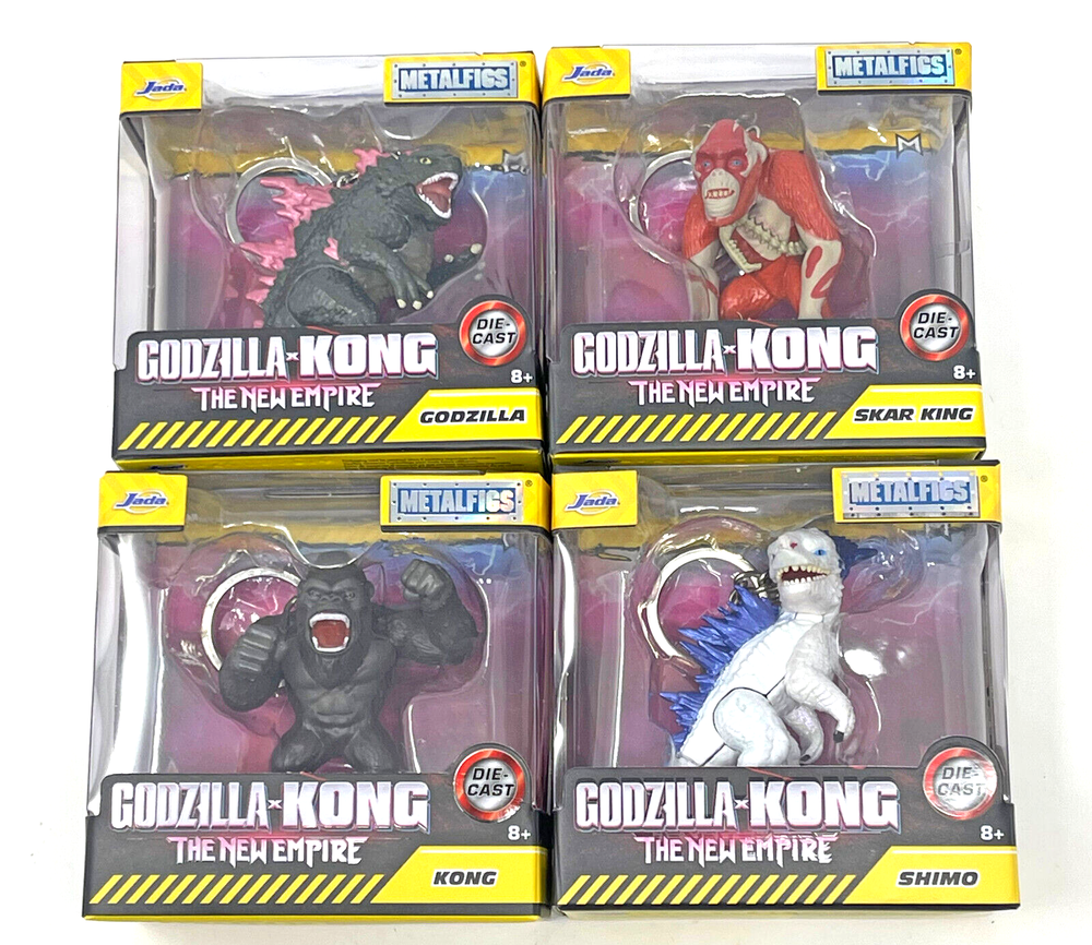 Godzilla x Kong The New Empire Jada Metalfigs Die Cast Metal Keychain Set Includes Complete Set of 4 Characters Each Figure is Approximately 2.5" Tall Kong, Godzilla, Skar King, Shimo New in Original Packaging Will Ship in a Sturdy Box Thanks