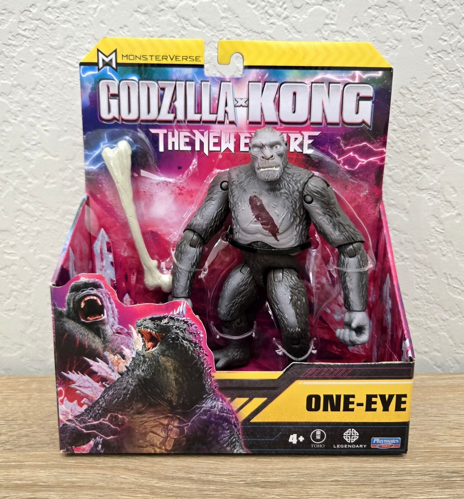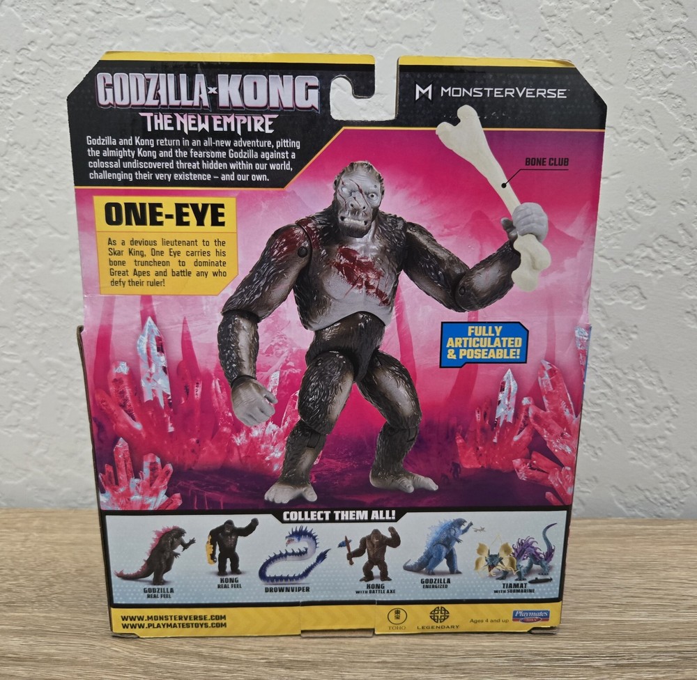 *Free shipping with USPS Ground Advantage. Ships ASAP. Packaged with care. Smoke-free home.* The Godzilla x Kong The New Empire ONE-EYE Figure Set features a 7-inch plastic action figure of the character One Eye from the franchise. It includes accessories and is from the 2024 series. The figure is part of the Godzilla x Kong theme and is adjustable. It is a new item manufactured in China by Playmates Toys.
