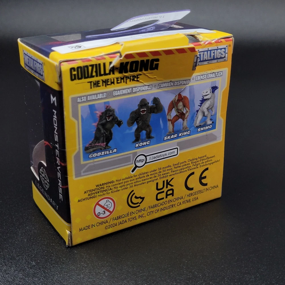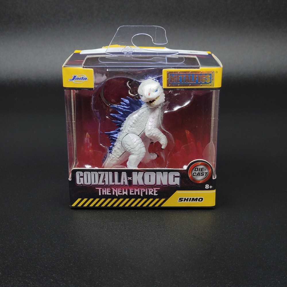 The "Godzilla x Kong The New Empire SHIMO JADA METALFIGS Key Chain" is a 2.5-inch key chain featuring a character from the Godzilla theme. Made by Jada, this collectible item is from the year 2024 and is recommended for ages 8 and up. The key chain is designed with attention to detail and is part of a series that includes characters from Godzilla and Kong. It is manufactured in China, adding to its appeal for fans of the popular monster franchise.