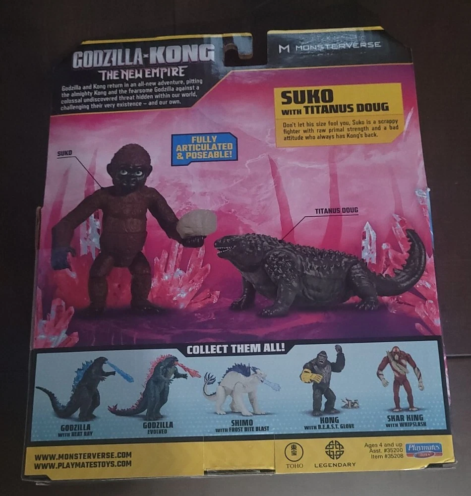 *Free shipping with USPS Ground Advantage. Ships ASAP.* Own a piece of the epic battle between Godzilla and Kong with the Suko and Titanus Doug figure set from the movie "Godzilla x Kong The New Empire". This set includes two action figures of the characters, Suko and Titanus Doug, both intricately designed and colored in multicolor. The figures are fully adjustable and come boxed, making it a great addition to any collection. Released in 2023 by Playmates Toys, this figure set is based on the popular franchise of "Godzilla x Kong" and is perfect for fans and collectors. The figures depict two of the animal species, an ape and a dragon, from the movie and are part of the series "Godzilla x Kong The New Empire". Don't miss the chance to own these figures from one of the biggest movie franchises of all time.