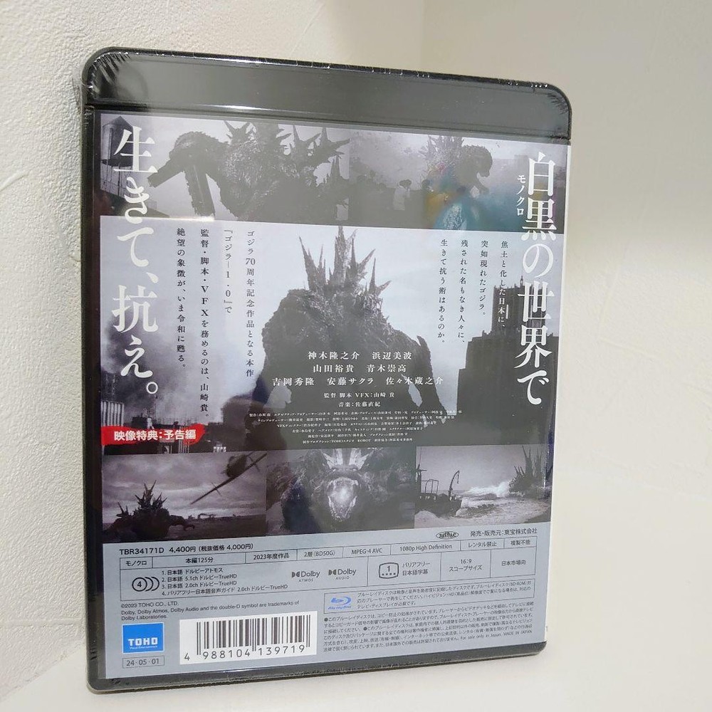 "Godzilla-1.0/C" [Blu-ray] Description Condition: New Release date: May 1, 2024 Publisher: Toho Co., Ltd. Number of discs: 1 (1 Blu-ray Disc Video) Color: Monochrome Language: Japanese Payment Please pay within 5 days after the auction closed. Shipping This item will be sent from Japan, with economy airmail parcel. Economy Shipping from 11 to 23 business days. We provide tracking number. Buy with confidence. Returns Returns are accepted ONLY if the item was not the item described. International Buyers - Please Note: * Import duties, taxes and charges are not included in the item price or shipping charges. These charges are the buyer's responsibility. * Please check with your country's customs office to determine what these additional costs will be prior to bidding/buying. * These charges are normally collected by the delivering freight (shipping) company or when you pick the item up - do not confuse them for additional shipping charges. * We do not mark merchandise values below value or mark items as "gifts" - US and International government regulations prohibit such behavior.