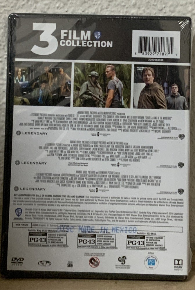 3đ Godzilla/Godzilla: Kind Of The Monsters / Kong Skull Island (DVD) NEW.
