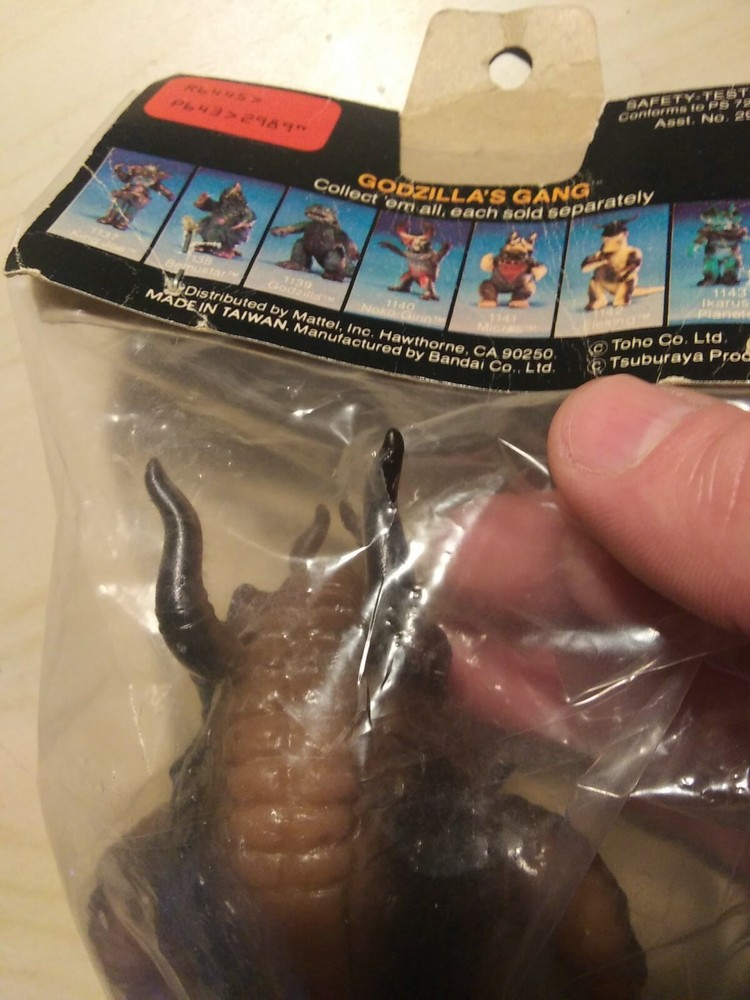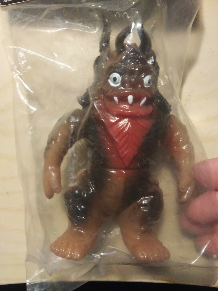 Godzilla's Gang Miclas Popy Ultraseven Ultra 7 Mint Condition Popy. This figure is mint and comes complete with original header card and bag...the bag and header show some wear with a couple of small holes where the horns are located and some card flaws and creases...see pics ...U. S. Delivery only...
