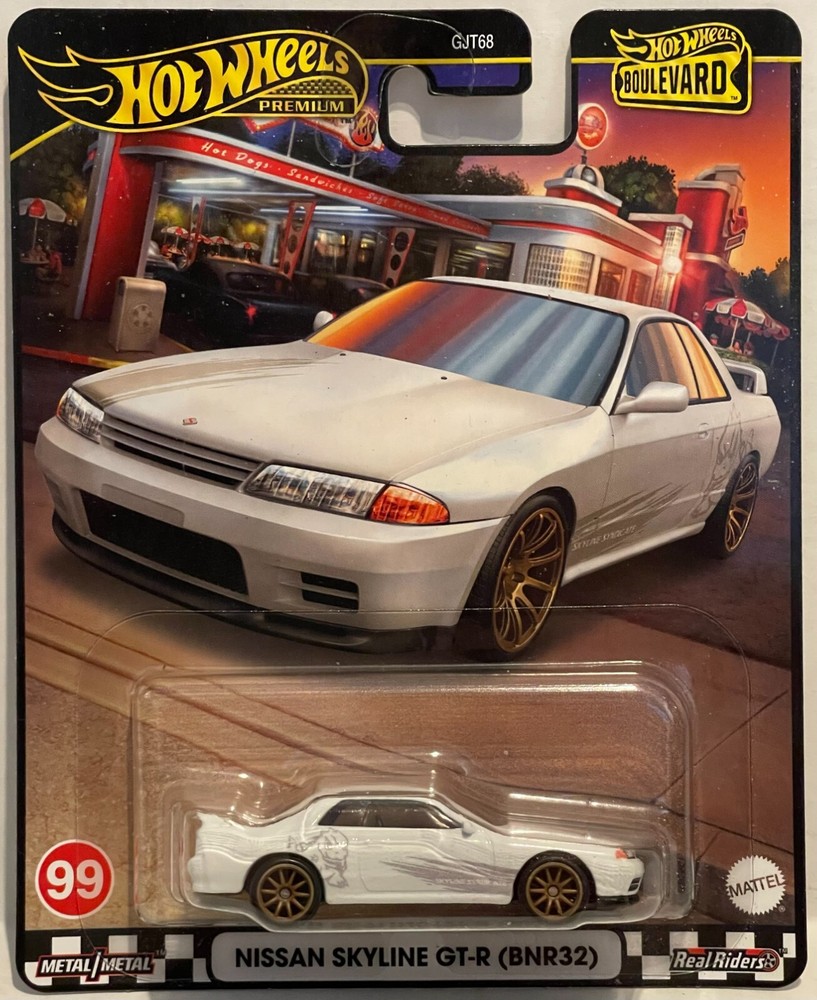 The NISSAN SKYLINE BNR32 from the 2024 Hot Wheels Boulevard Series. White body with Gray Godzilla graphics and Gold mag wheels with Real Riders rubber tires. It comes mint on a NM to MT Premium #99 card. Look at photos of actual item at auction and ask questions before bidding. USPS Ground Advantage shipping is $3.99 in USA and includes FREE USPS tracking. International shipping at exact rate. Don't forget to check out my many eBay store categories for more diecast. Everything is sorted and easy to find. High Bidder prepays plus shipping within "Three ((3)) days of auction" end unless prior payment instructions established with seller. FREE USPS tracking in USA is included with all Priority and Ground Advantage shipping. Multiple auctions winners - please wait for a combined shipping invoice before making PayPal payment. Please read complete item description, view photos and email any questions before bidding. All US shipments by USPS Priority or Ground Advantage in a box, unless specified in description above and ALL items shipped the First Business Day OR Same Day if possible, after payment received. US Postal Service guarantees delivery in 5 business days or less. If offered, International shipments up to 4 pounds by First Class and Priority for 4 pounds and higher and rates based on actual weight and destination. Please contact seller for rates prior to bidding. International shipments may be delayed due to customs processing and your local carrier service and SELLER IS NOT RESPONSIBLE for these delays. Shipping rates shown in auction are for US DESTINATIONS ONLY.