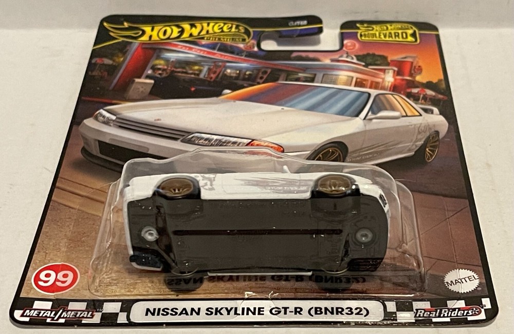 This Hot Wheels Boulevard Nissan Skyline GT-R looks amazing! The white body with gray Godzilla graphics and gold mag wheels make it stand out. The Real Riders tires add a premium feel, and the card is in great condition. Shipping is fast and affordable—definitely a must-have for any JDM collector! Check out the seller’s other listings too!