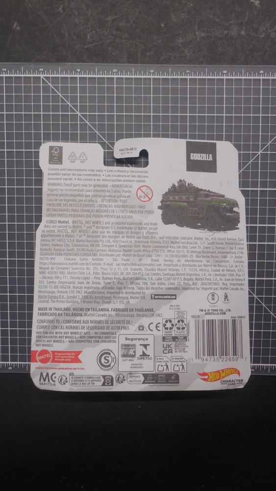 This Hot Wheels Character Cars die-cast toy features the iconic Godzilla from the Monsterverse theme. The 1:64 scale military truck is made of high-quality materials and comes in its original packaging, unopened. The toy is recommended for children aged 3 and above, and is perfect for both boys and girls. The Hot Wheels Character Cars series is known for its attention to detail and this Godzilla model is no exception. With its multi-color design and unopened box, it's a great addition to any collection or gift for a fan of the franchise. Made in Thailand, this toy is sure to provide hours of imaginative play and is a must-have for any collector. Card may show minor shelf ware.