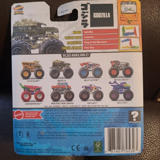 Get ready to add the iconic Godzilla to your Hot Wheels Monster Trucks collection! This green 1:64 diecast monster truck is brand new and comes in an unopened box. The vehicle is part of the Hot Wheels Monster Trucks series and features the theme of the famous monster. The model is recommended for children of age 3 and up, both boys and girls. The Hot Wheels Monster Trucks Godzilla 2023 is an ideal gift for any fan of the character or collector of diecast vehicles. The truck is made by the Hot Wheels brand and has all the features you expect from their quality products. Don't miss out on the chance to own this awesome monster truck! Item will be wrapped in bubble wrap & shipped in a box for safe shipping and delivery