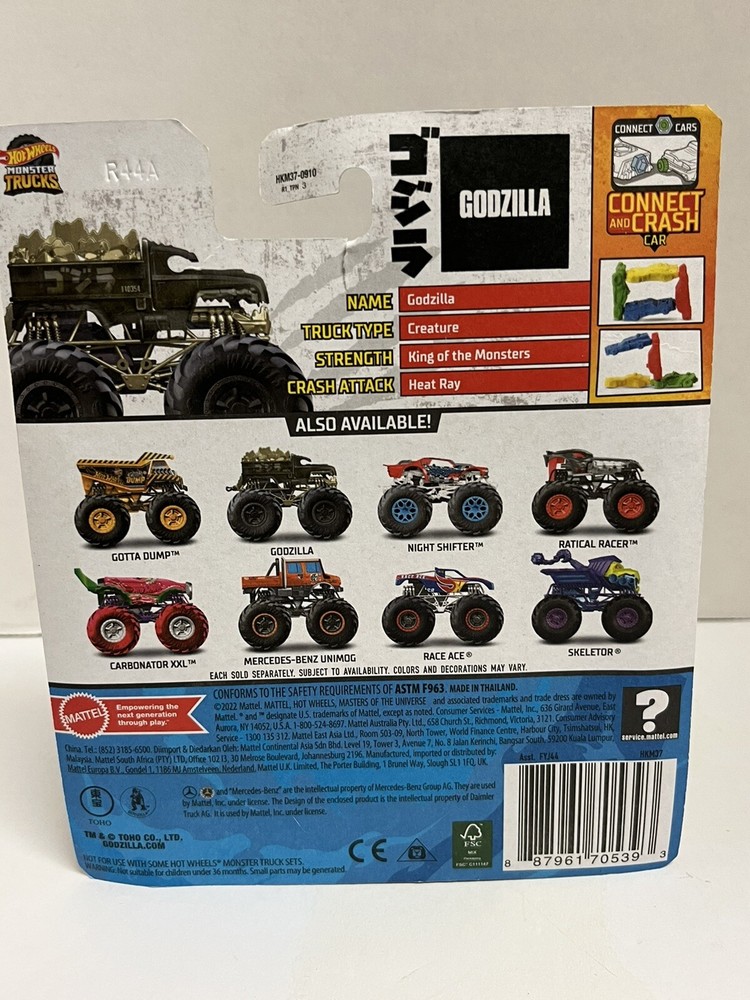 Hot Wheels Monster Trucks Godzilla Mattel Year: 2022 Brand: Mattel Material: Diecast with plastic parts Condition: Brand New in unopened packaging (cardboard has a rip, see last picture) Emf4 G-5...
