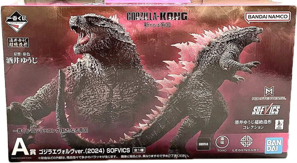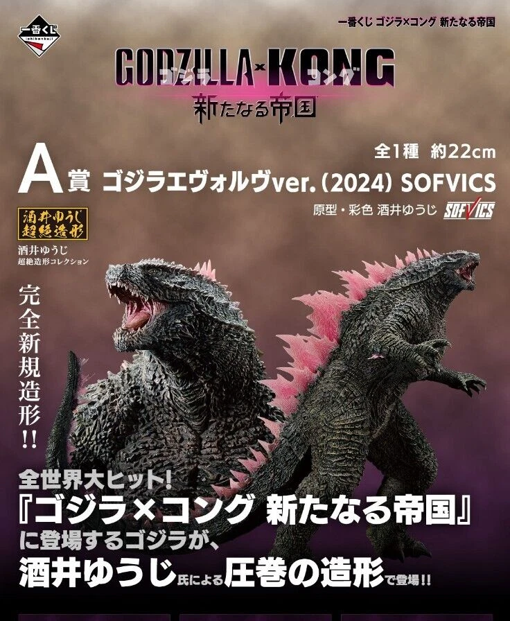 Ichiban Kuji GODZILLA x KONG Godzilla Evolve ver. (2024) A Prize Japan New Description Yuuji Sakai superb modeling collection About This Items Prize A Godzilla Evolve ver. (2024) SOFVICS The new form of Godzilla, which will appear in the Hollywood movie “Godzilla x Kong: The New Empire,” to be released in April 2024, is already available in the Ichiban Kuji Lottery. The figure has been sculpted with an overwhelming sense of form and uncompromising attention to detail, resulting in a gem with a soul of its own. The color of the dorsal fin, the more stylish body balance, and other features of this Godzilla have been perfectly reproduced, while the posing of the figure has been thoroughly considered from the top of the head to the tip of the tail and fingertips. We hope you will take it in your hands and check it out for yourself! The coloring and other aspects of the product's appearance may vary slightly from one item to the next. Appearance New and unused Condition Beautiful Size: approx. 22 cm Shipping We always send the item with a tracking number. So please place an order without any concern on delivery. You can always track the delivery status. Shipping is only available to the address registered in eBay. If you want us to send another address, please change your address on eBay and then place an order. S hipping is available from Monday to Friday. Weekends are not available because freight (shipping) companies are closed. We do not mark merchandise values below value or mark items as “gifts” – Japan, US and International government regulations prohibit such behavior. About Importer's Obligation Import duties, taxes, and charges are not included in the item price or shipping cost. These charges are the buyer's responsibility. Please check with your country's customs office to determine what these additional costs will be prior to bidding or buying. Thank you for your understanding. If you shop in bulk, you can get a little discount!❤