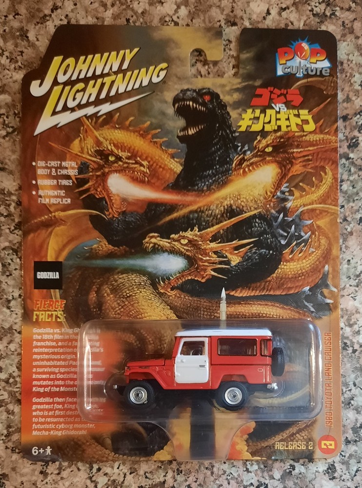 JOHNNY LIGHTNING 2023 POP CULTURE R2 GODZILLA 1980 TOYOTA LAND CRUISER WHITE LIGHTNING CHASE CAR VHTF. White Lightning Features include White Doors & Tinted Windows. Condition is New. Car, Card and Blister are in beautiful condition, showing minimal to no shelf/storage wear. Displays perfectly(Please judge for yourself from the pics provided and feel free to ask any questions). You will recieve the exact item as pictured shipped USPS First Class, packed carefully in a box for a safe ride.