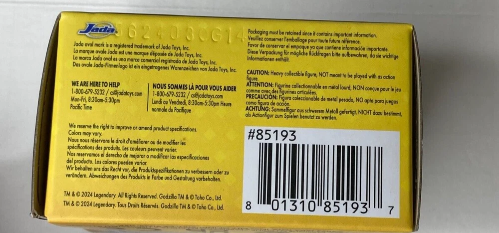 This Jada Metal figs Godzilla & Kong the New Empire-Skar King- Key Chain figure is a must-have for any fan of the Godzilla franchise. Made of high-quality metal, this 1:48 scale figure stands at 2.5 inches tall and features intricate details of the Skar King character from the upcoming movie. The figure comes boxed and is an original, licensed reproduction from Jada Toys.Perfect for collectors or children aged 8-11 years, this multicolor figure is not only a great addition to any toy collection but also a practical key chain accessory. The Godzilla & Kong the New Empire-Skar King- Key Chain figure is a great way to show your support for the Godzilla franchise and is sure to be a hit with fans of all ages. All toys are shipped in a box. THANKS FOR VIEWING OUR ITEM IF YOU'RE GOING TO PURCHASE AN ITEM MAKE SURE YOUR ADDRESS IS CORRECT. ONCE AN ITEM IS PAID FOR, WE WILL NOT SHIP TO AN ADDRESS OTHER THAN WHAT EBAY SHOWS FOR YOU. ALL TRANSACTIONS ARE PROCESSED THROUGH EBAY, INCLUDING THE PRINTING OF THE LABEL WITH YOUR ADDRESS ON IT. We pride ourselves on making buyers happy with smooth transactions and nice items. Your item will be shipped in 1-3 business days after payment is received. If payment is not received after four days, the item will be relisted. Packages are shipped only during scheduled business days at the post office. If Your item is purchased on Friday, Saturday or Sunday it may cause a delay in shipping. Holiday closings may also delay shipping. WE DON'T OFFER COMBINED SHIPPING ON OUR ITEMS. SORRY FOR ANY INCONVENIENCE The pictures of our items listed are pictures of the exact items you will receive. Please message us with any questions about the items and we will answer them ASAP.
