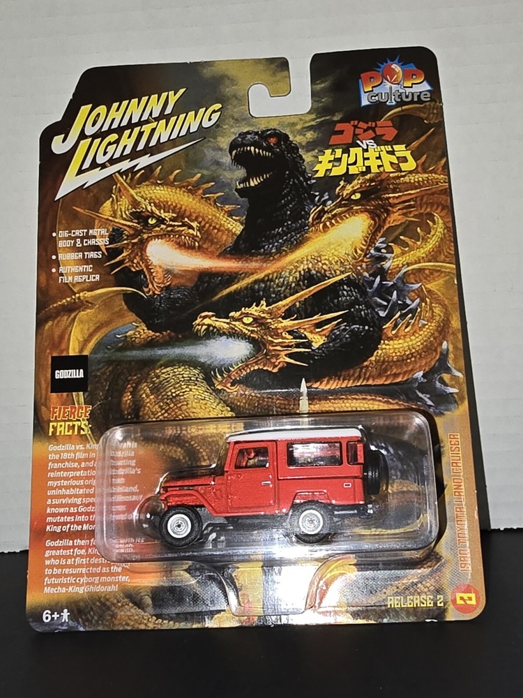 This Johnny Lightning Pop Culture toy features the iconic 1980 Toyota Land Cruiser from the classic movie Godzilla Vs Ghidora. The red diecast car is in unopened box and comes in a 1:64 scale. It is perfect for collectors and fans of the franchise, with detailed features such as the Toyota logo and the Godzilla theme. The age range is 6+ and it is suitable for boys and girls. Awesome!!! Item will be packaged with the utmost care! Buy with Confidence. Item ships within 2 days of full payment International shipping fees are buyers responsibility. Reasonable Offers are Considered! I have 100% Positive Feedback and Take Great care in packaging your Items. Thank you for viewing and Check out my other items listed. Happy Shopping