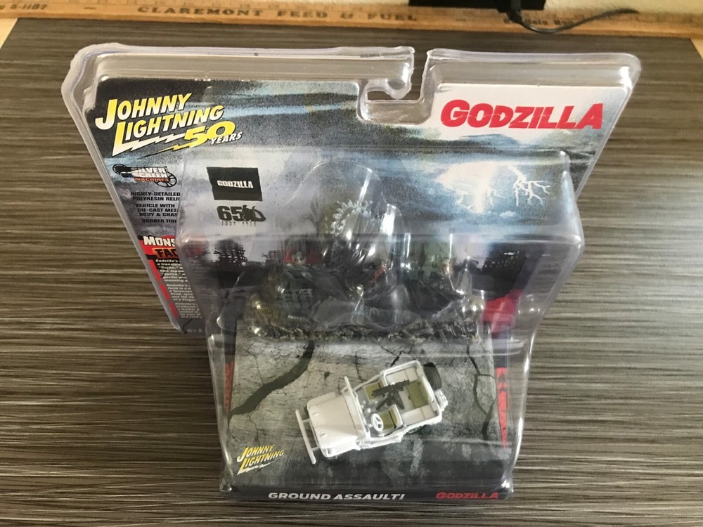 Johnny Lightning 50 Years "WHITE LIGHTNING" Chase 1941 Willys MP Jeep w/Godzilla Diorama Set, Very Nice. Ships Well Protected, SAFE & FAST, thanks for looking!