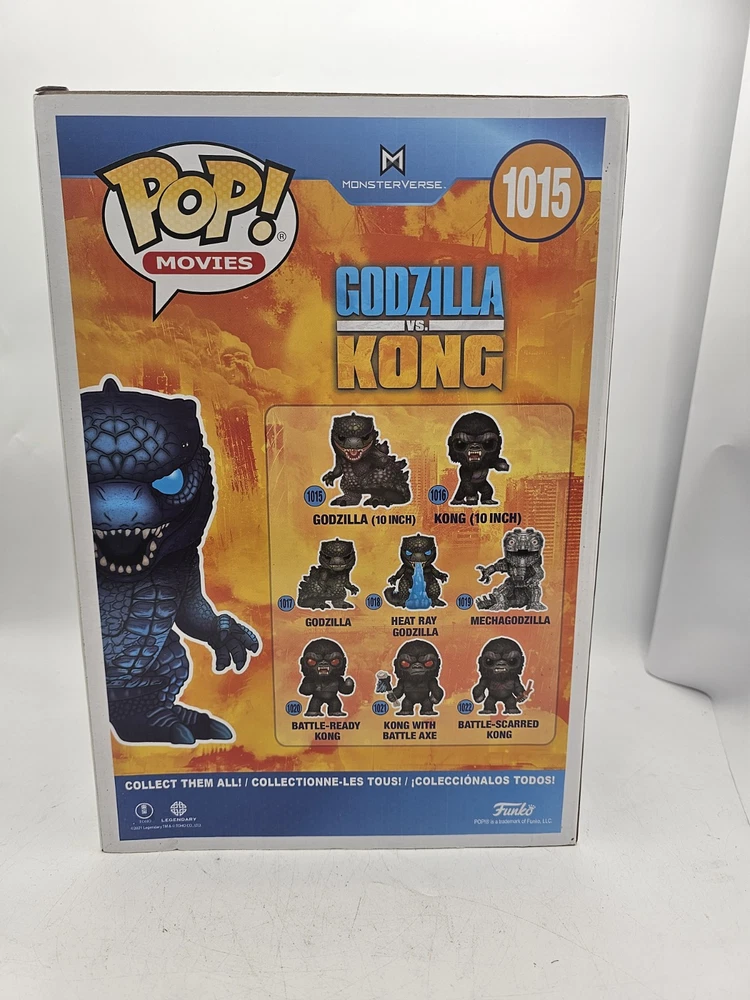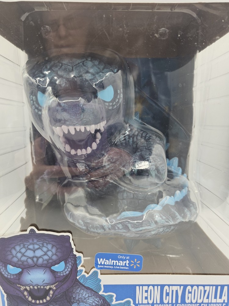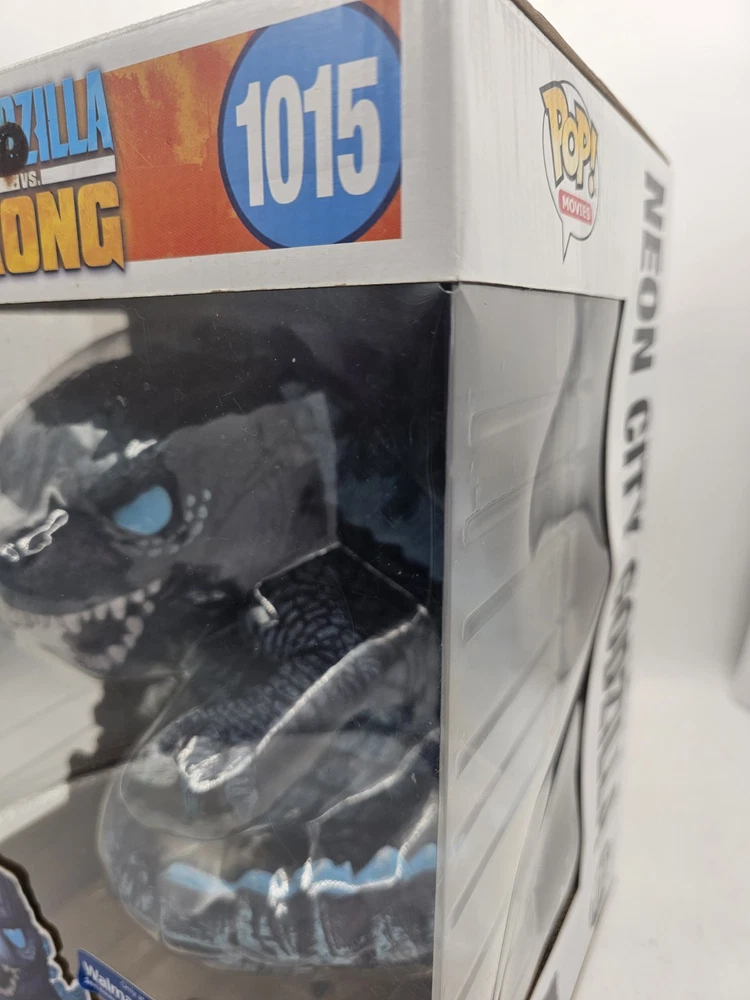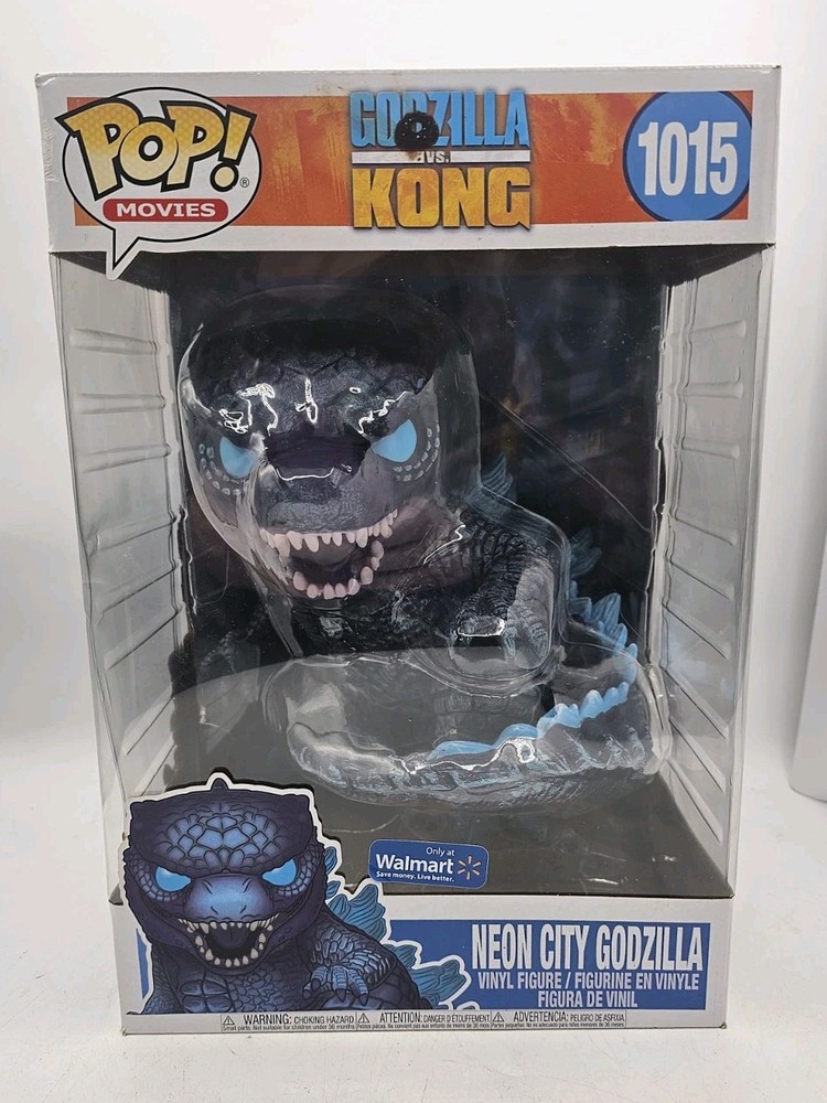 This listing is for a Jumbo Neon City Godzilla vs. Kong Funko Pop #1015, an exclusive Walmart release. The figure features Godzilla, made of vinyl material, in jumbo size as part of the Pop! product line. Condition: The packaging is damaged, with a burn mark on the movie font on the front of the box. Please review the provided photos for details on the condition. *See photos for details. What you see pictured is exactly what you will receive. Review pictures and description carefully to ensure the item is right for you. Will package and ship with care. If you have any questions, please ask. From a smoke-free, cat-loving home.*